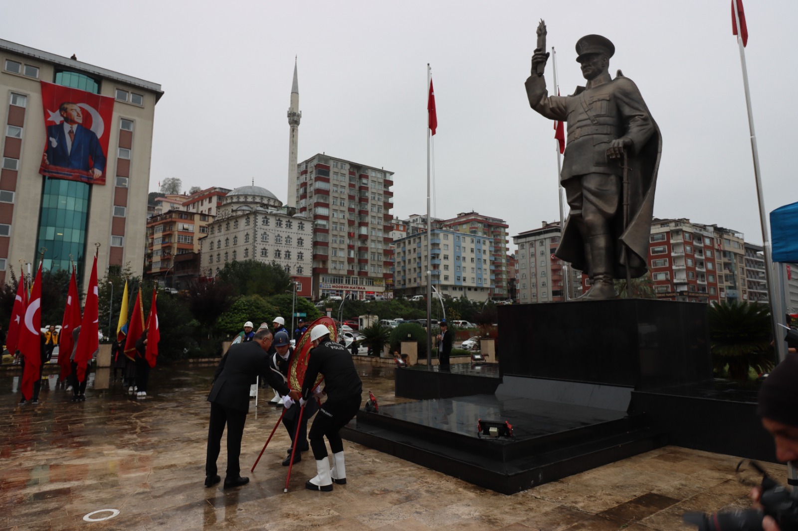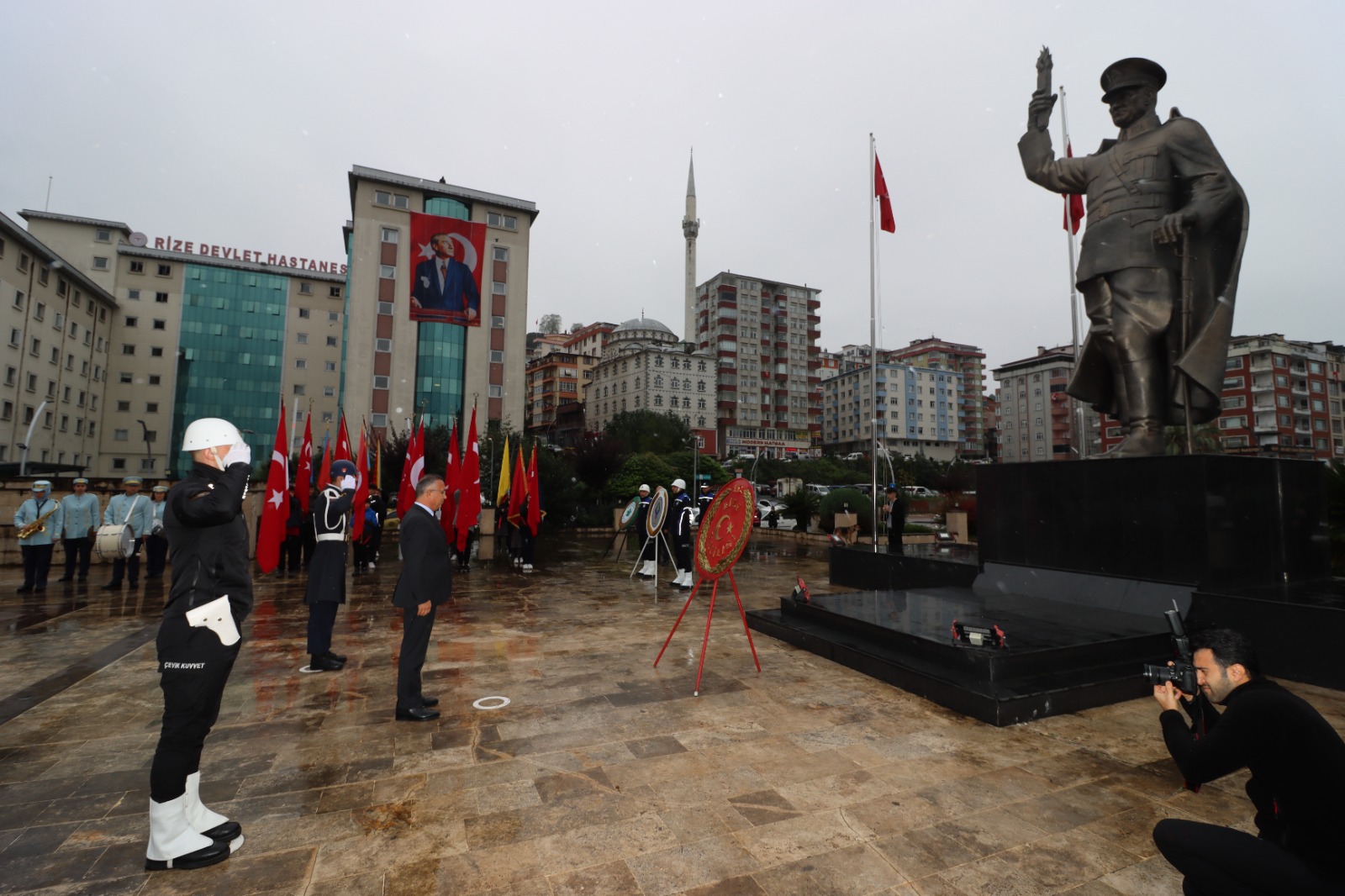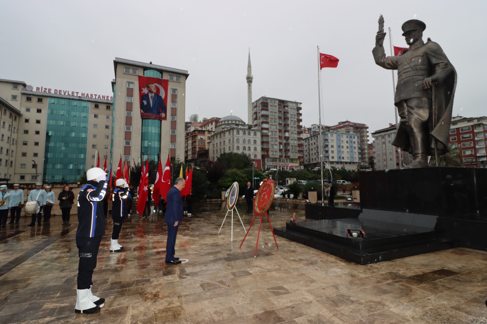 Cumhuriyetimizin Kurucusu Mustafa Kemal Atatürk’ün ebediyete intikalinin 84. Yıldönümü münasebetiyle düzenlenen program Rize Valiliği Tören Alanında Atatürk Anıtı’na çelenk sunulmasıyla başladı.