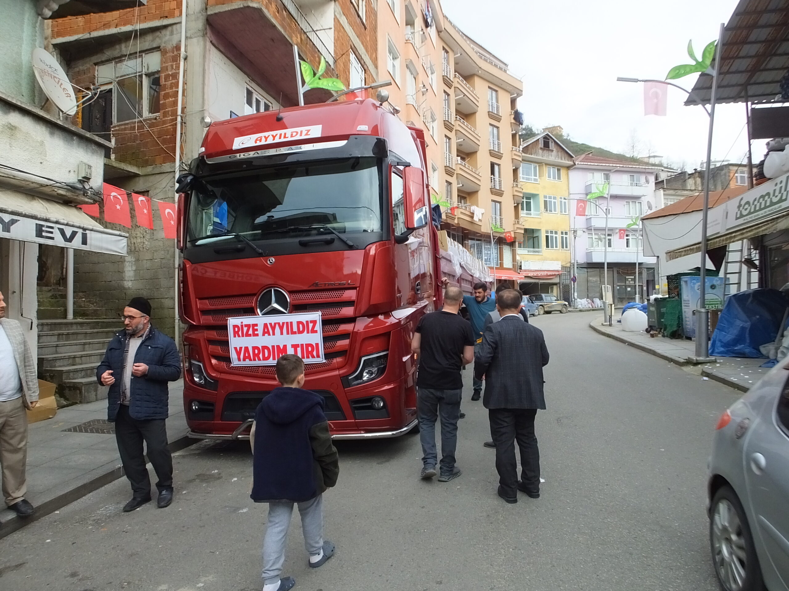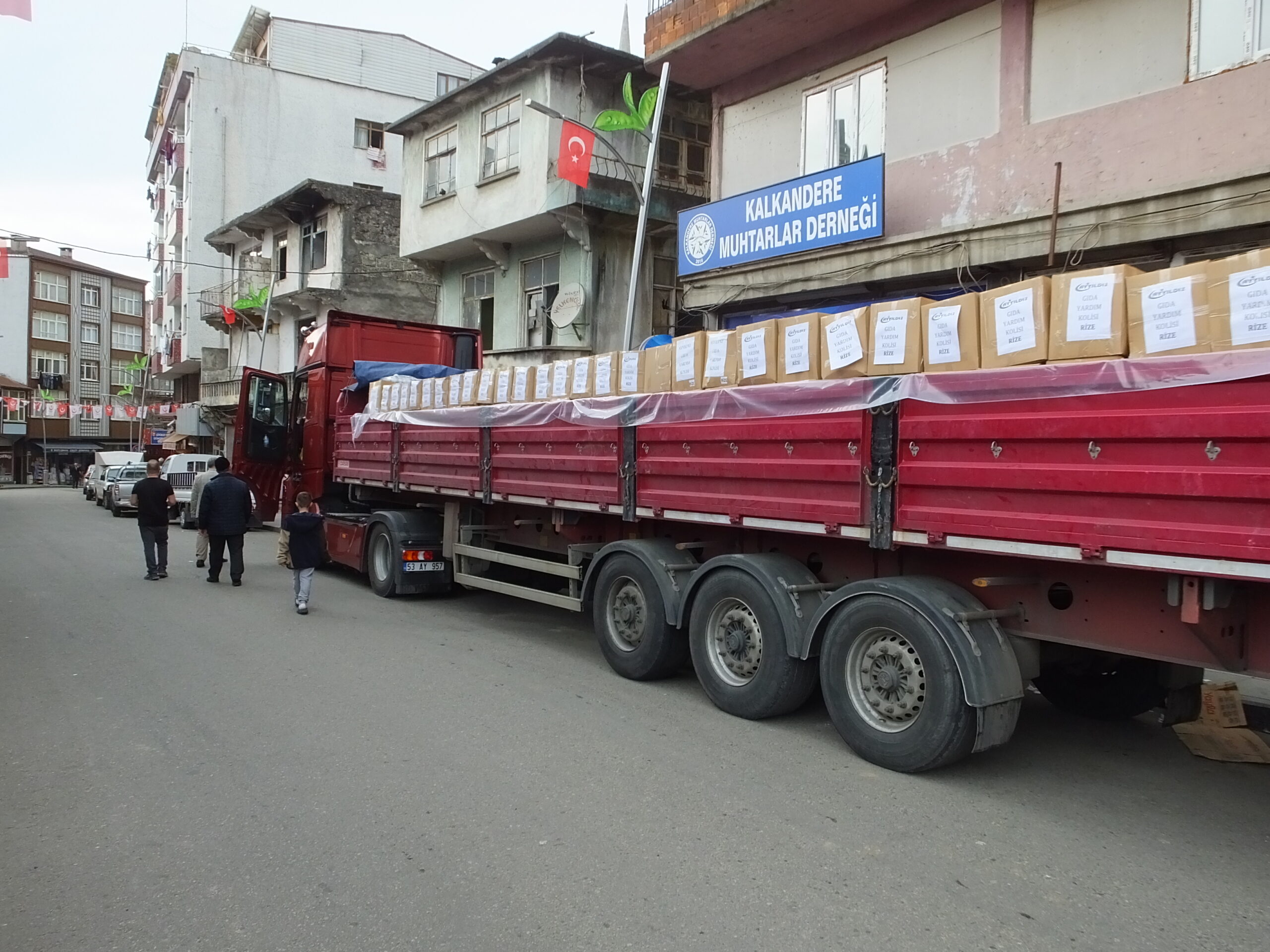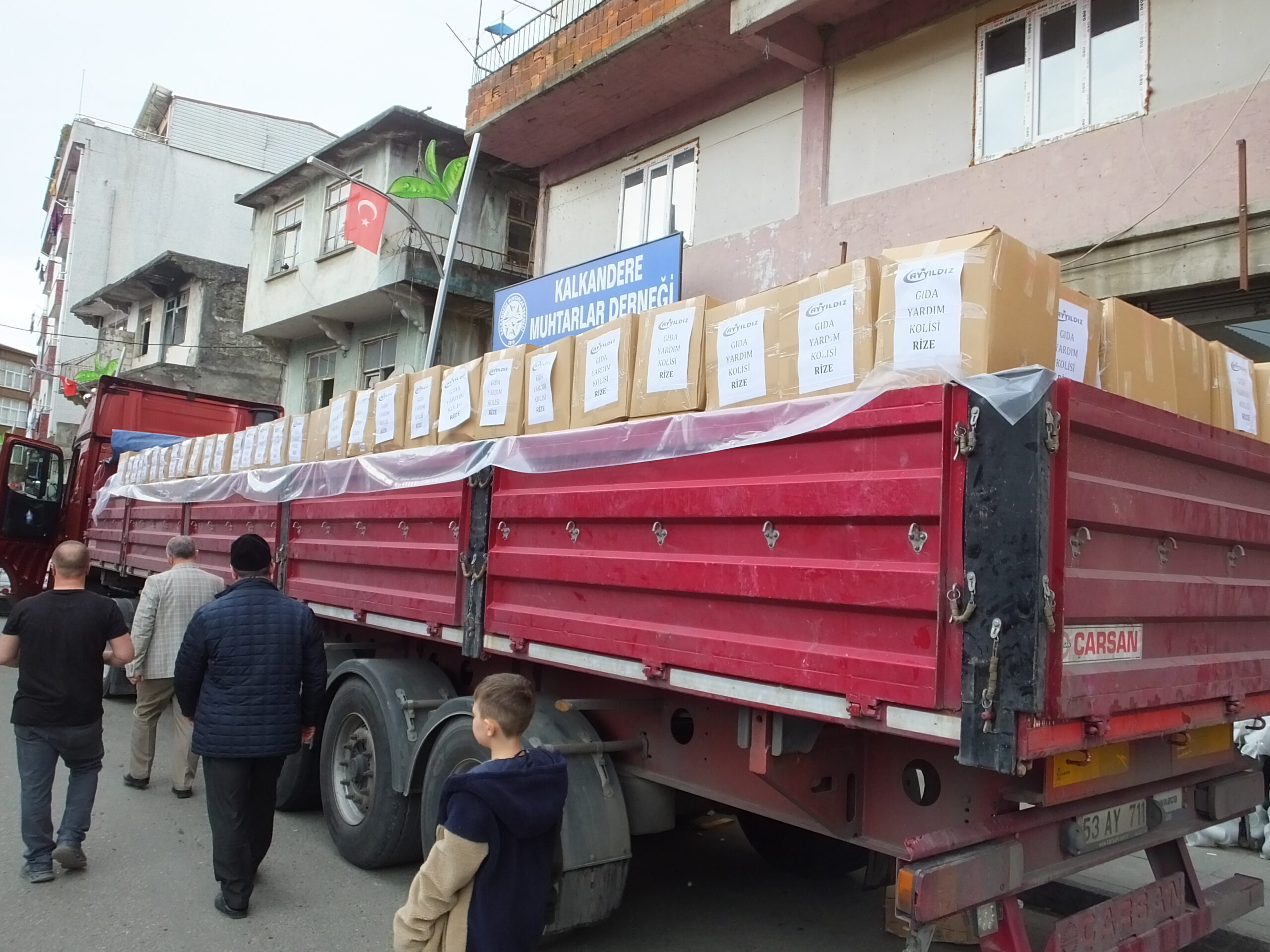 Kalkandere esnaflarından AYYILDIZ kardeşlerin sahibi olduğu AYYILDIZ Ticaretten deprem bölgesine yardım tırı gönderildi.