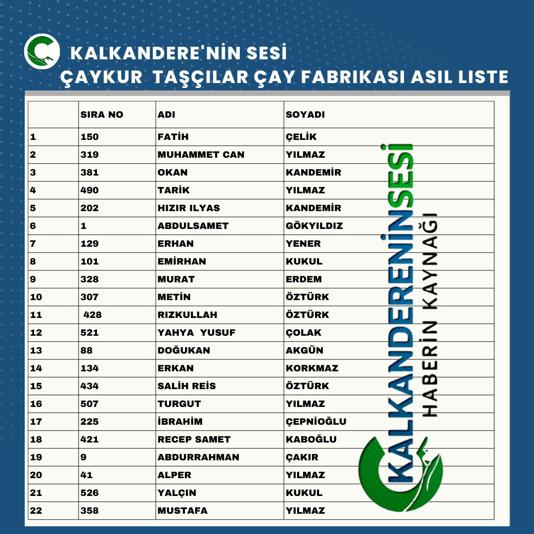 ÇAYKUR KALKANDERE FABRIKASI KURA ÇEKİM SONUÇLARI