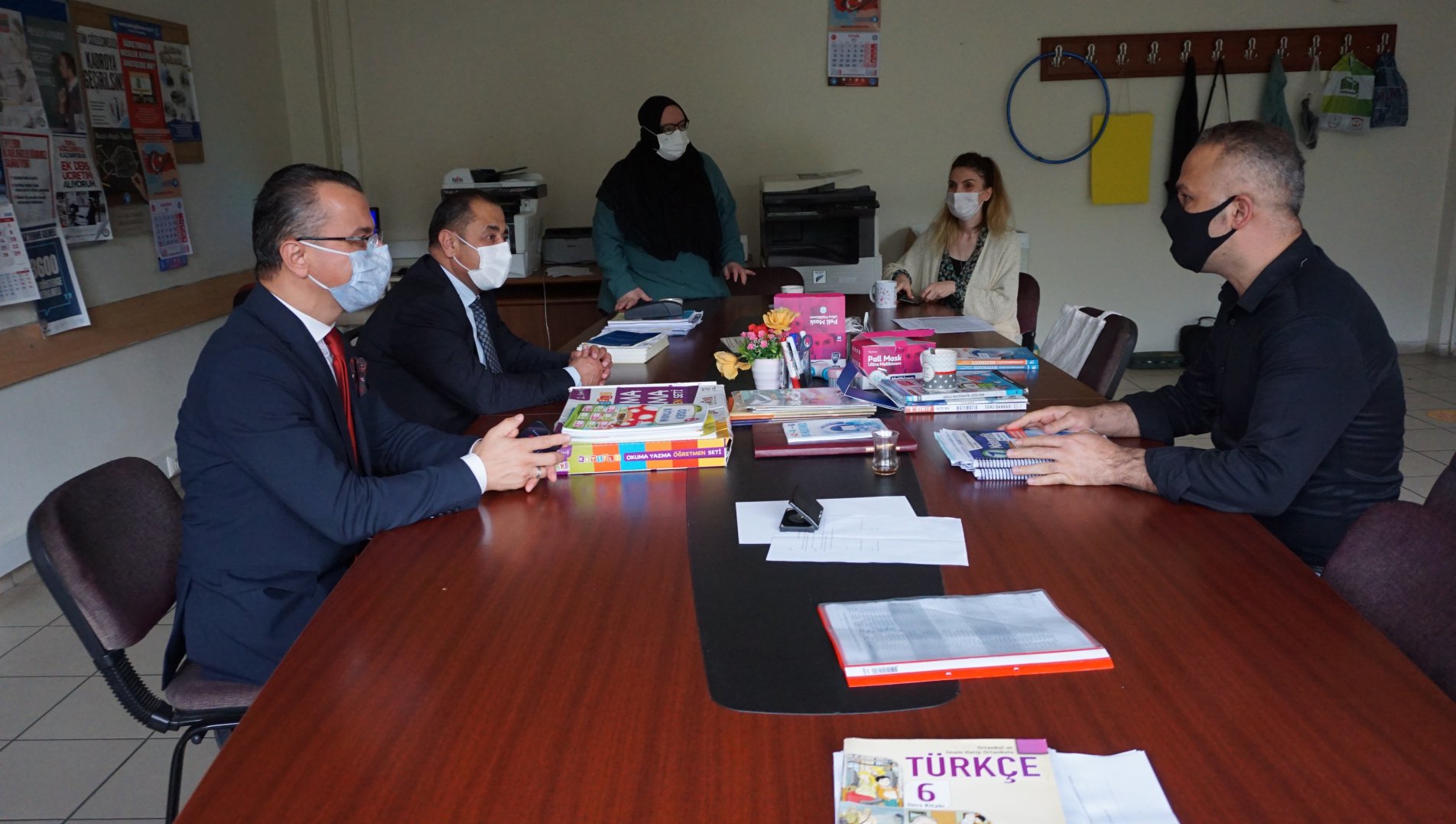 Öğretmenlerle bir araya gelen İl Milli Eğitim Müdürü Engin EMEN, eğitim öğretim yılının başlaması ile birlikte süreç hakkında öğretmenlerin düşüncelerini aldı. Hep birlikte gösterilecek özen ve fedakarlık ile öğrencilerimizin bir daha okullarından, öğretmenlerinden ayrılmamasını sağlamaya çaba sarfetmemiz gerektiğinin altını çizen İl Milli Eğitim Müdürü Engin EMEN sınıf ziyaretlerinde bulundu.