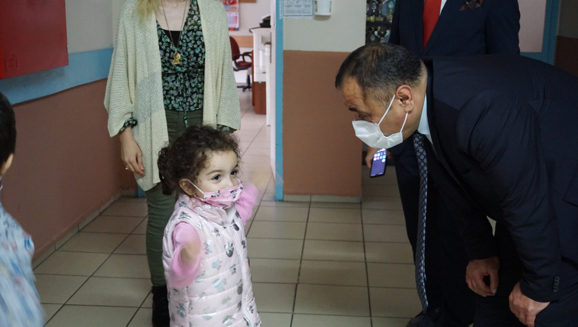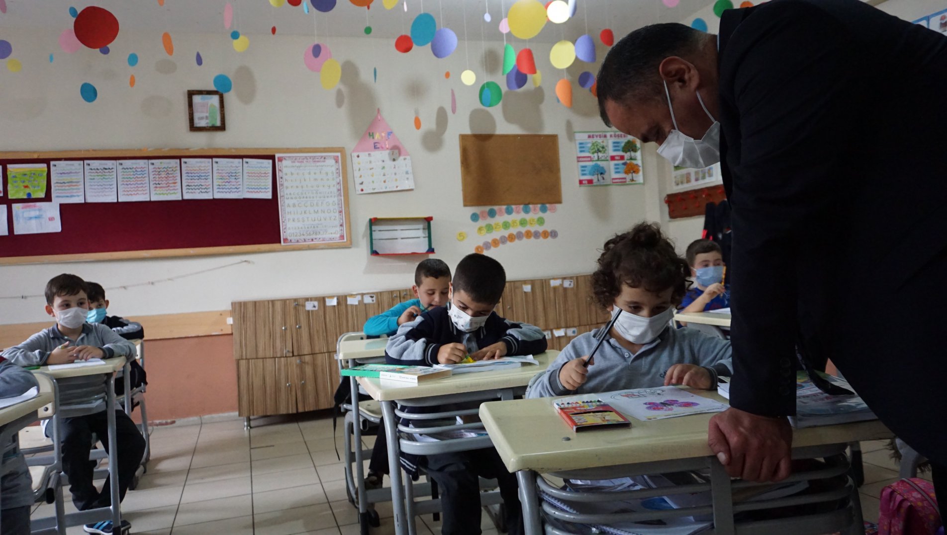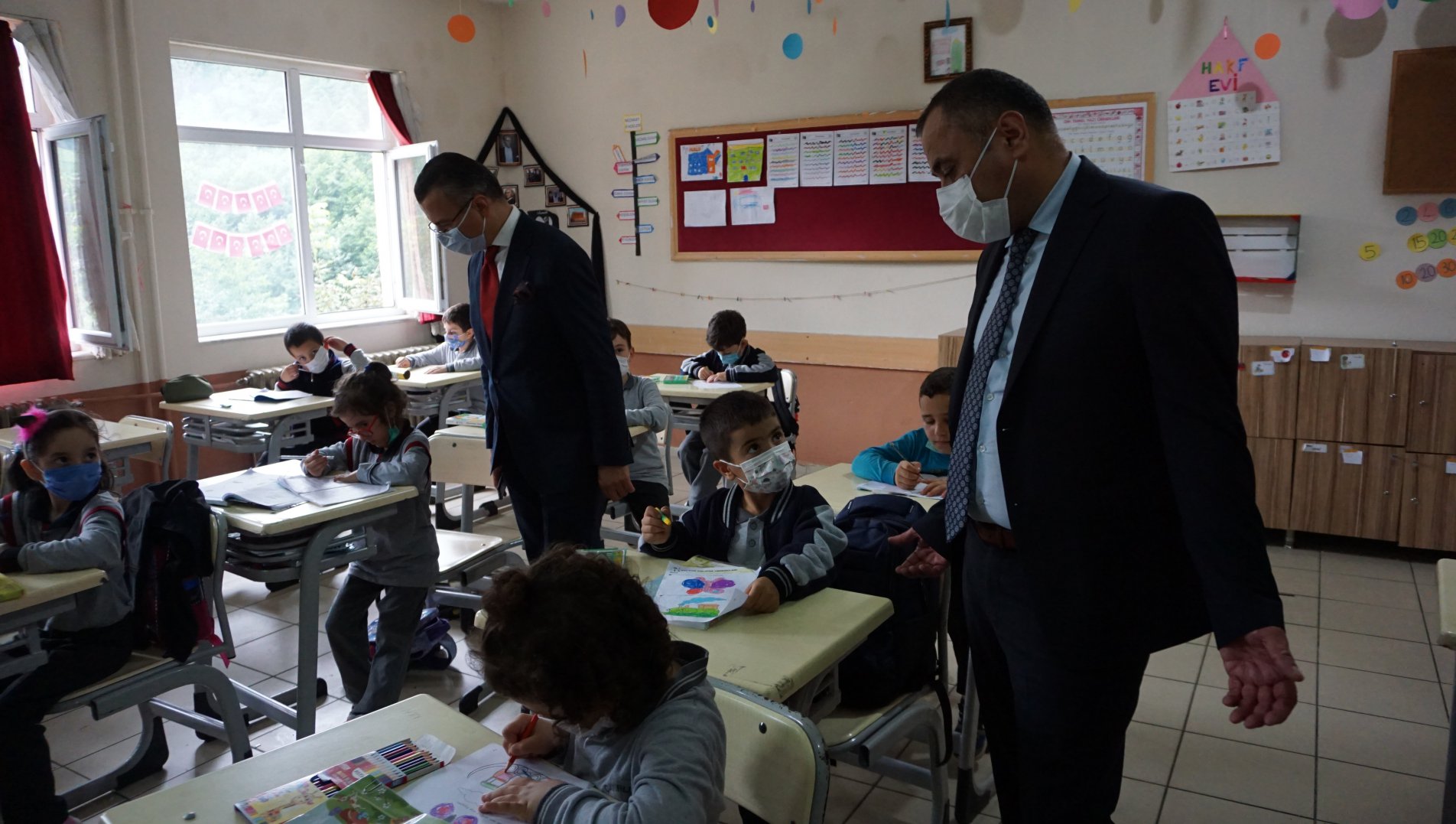 Öğrencilerle sohbet eden İl Milli Eğitim Müdürü Engin EMEN maske,mesafe ve hijyen konusunda uyarılarda bulunarak “Sizlerden yeniden ayrılmayı asla istemiyoruz. Biz bize düşen görevleri yerine getiriyoruz. Sizler de öğretmenlerinizin uyarılarına kulak verirseniz sağlıklı ve güvenli bir şekilde okullarınızda,sınıflarınızda derslerinizi yapmaya devam edersiniz.” ifadelerini kullandı.