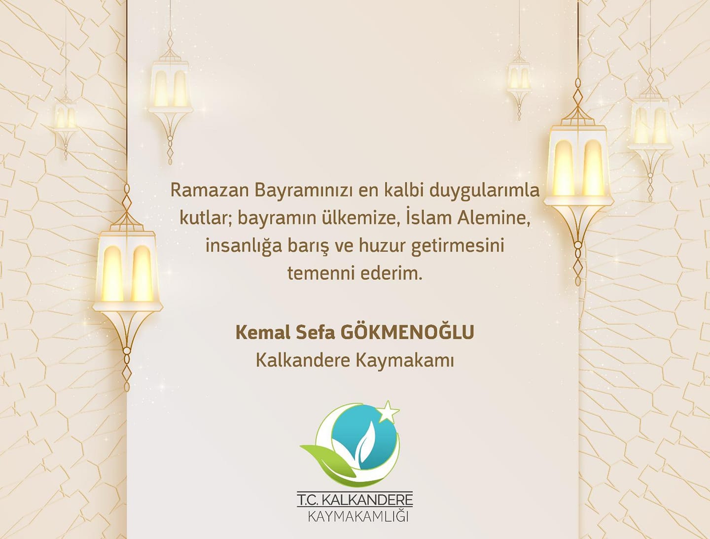 Kalkandere Kaymakamı Kemal Sefa GÖKMENOĞLU : “Ramazan Bayramınızı en kalbi duygularımla kutlar; bayramın ülkemize, İslam Alemine, insanlığa barış ve huzur getirmesini temenni ederim.” dileklerinde bulundu.
