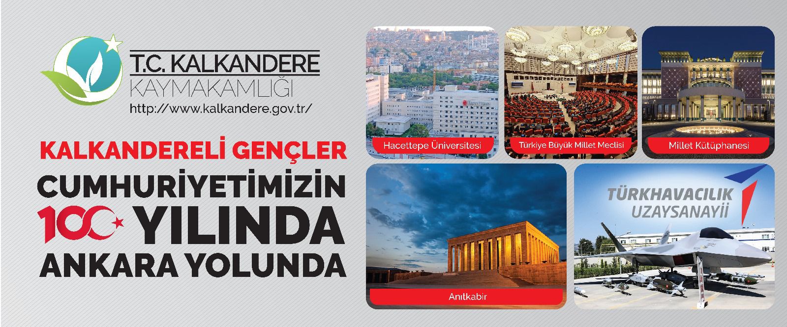 Kalkandere Kaymakamlığı tarafından gerçekleştirilen projede cumhuriyetimizin 100. yılında 100 gencimizi Ankara’ya götürüyor. Yapılan proje kapsamında 14-16 nisan 2024 tarihinde gençler Ankara’ya götürülecek.