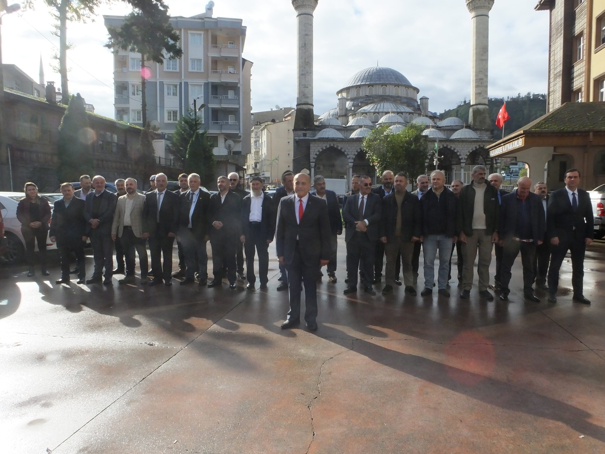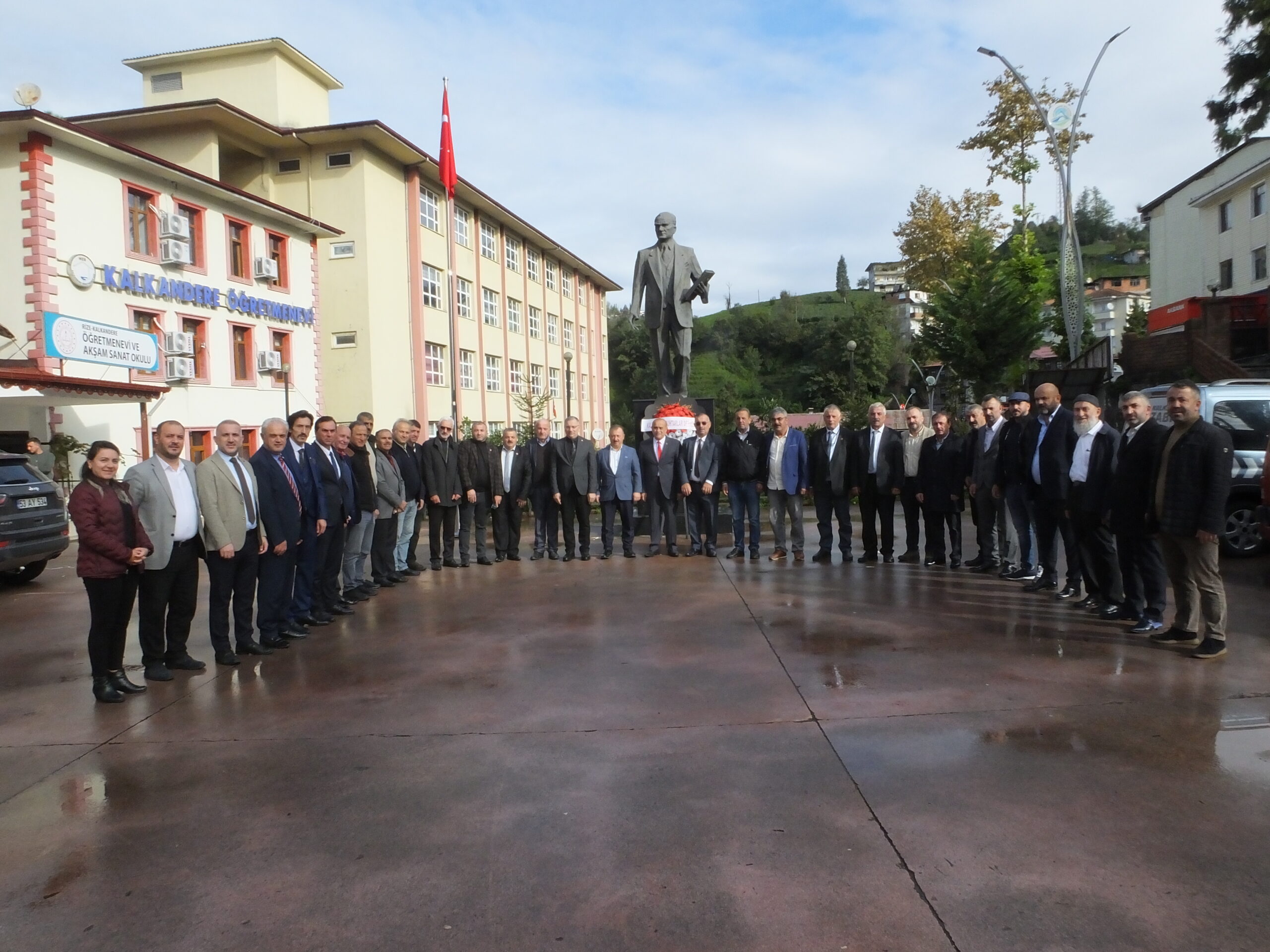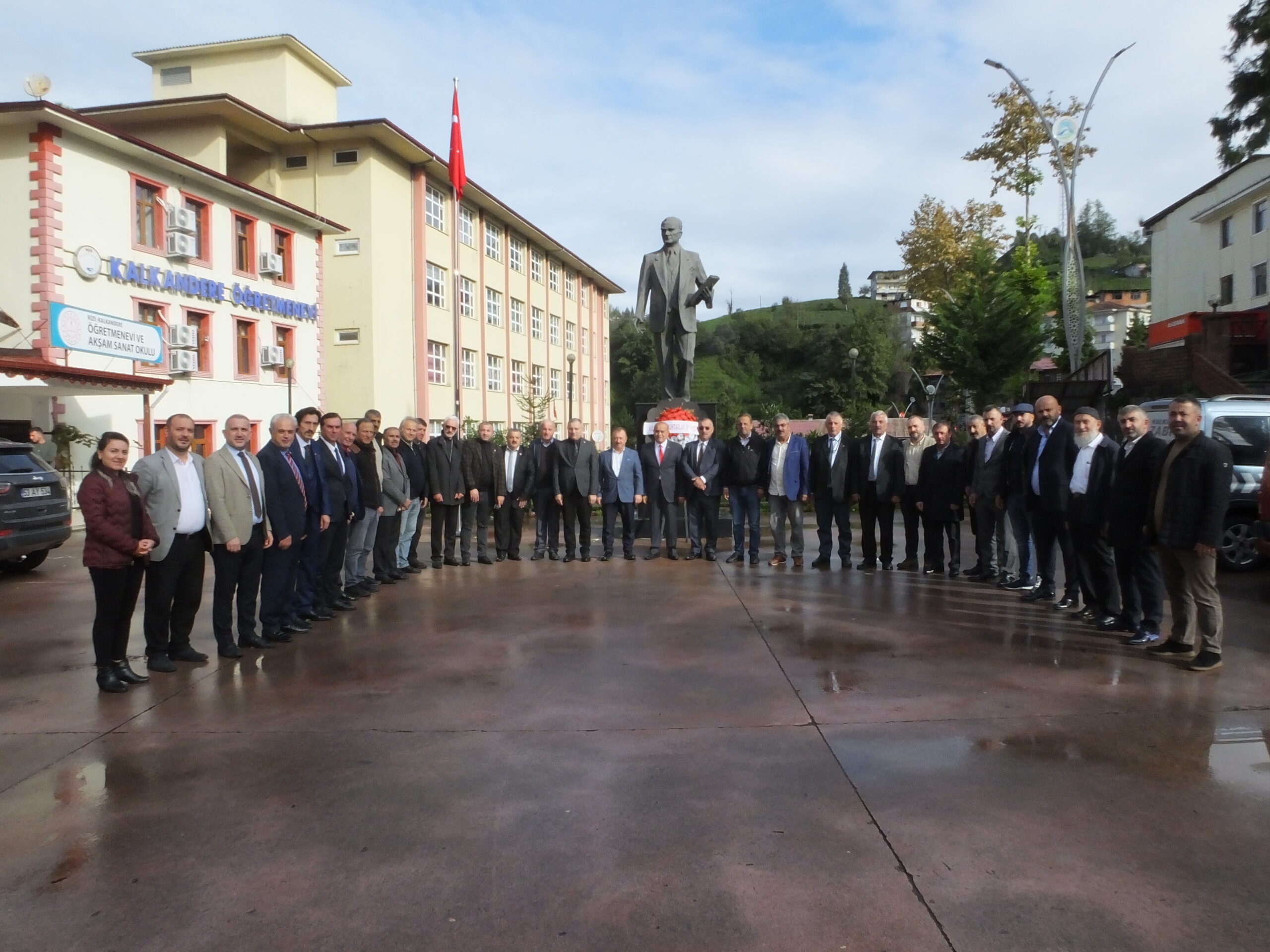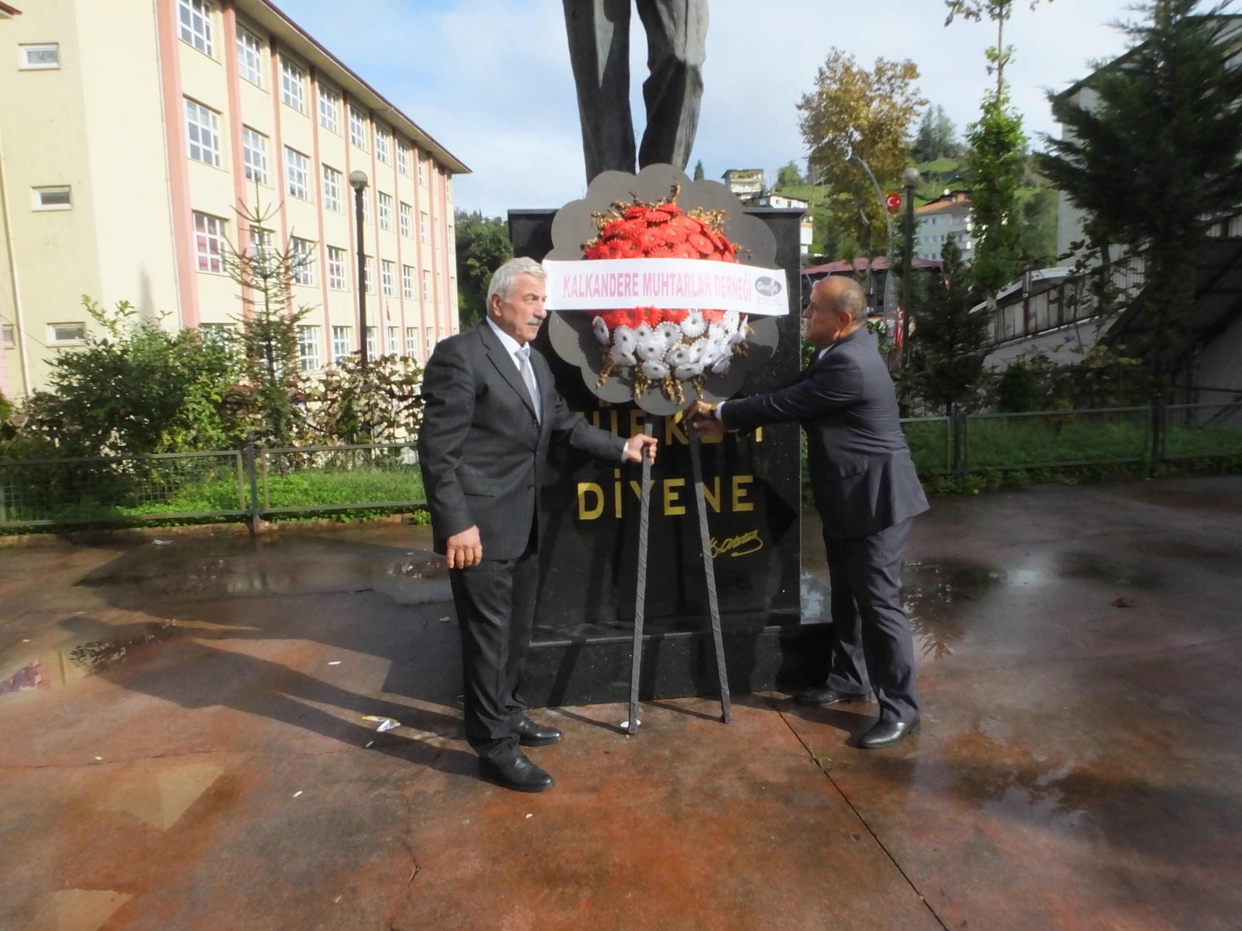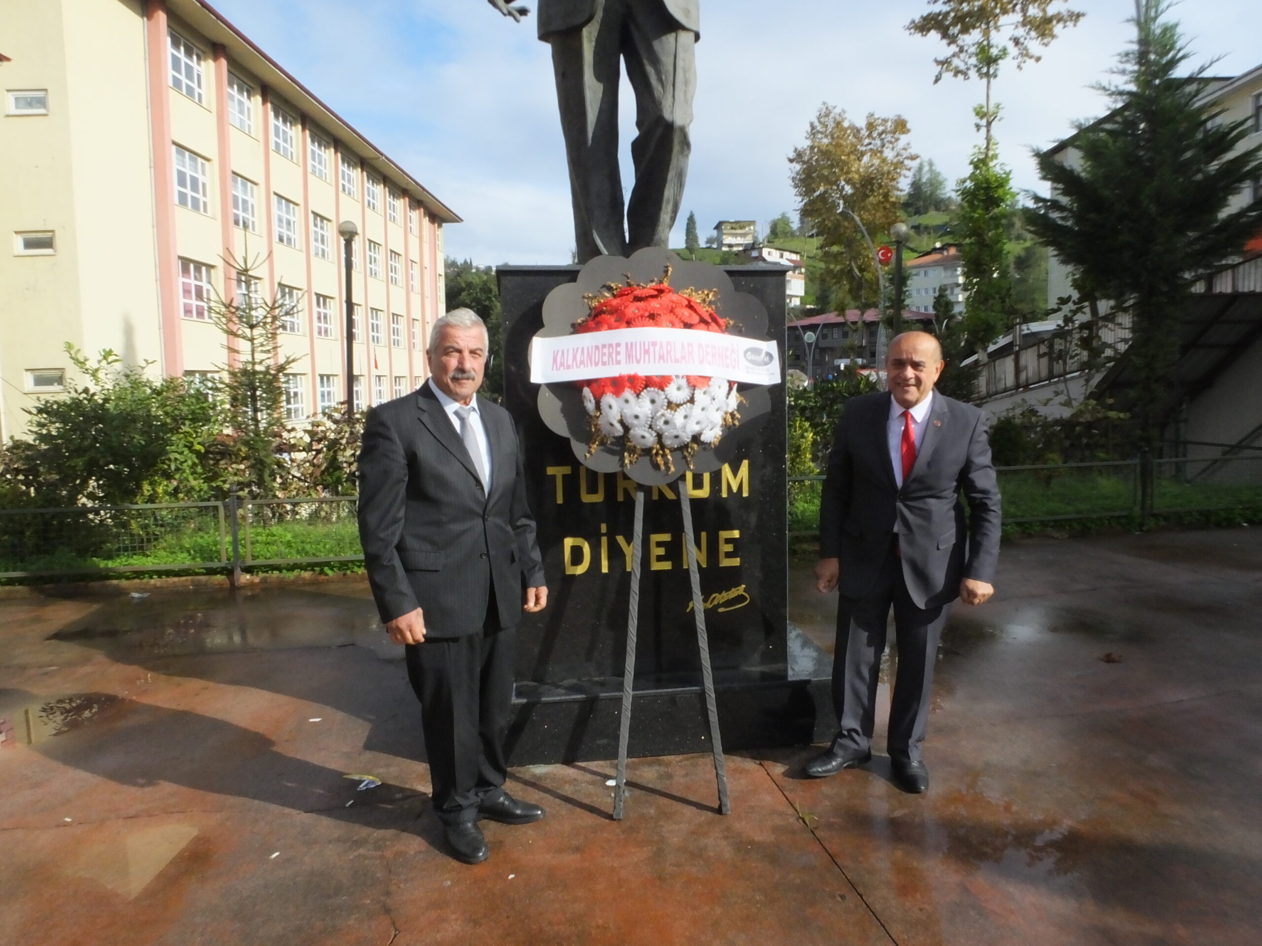 Kalkandere Köy ve Mahalle Muhtarları Sosyal Yardımlaşma ve Dayanışma Derneğine ait çelenkler, Hükümet Konağı önündeki Atatürk Anıtı’na sunuldu.
