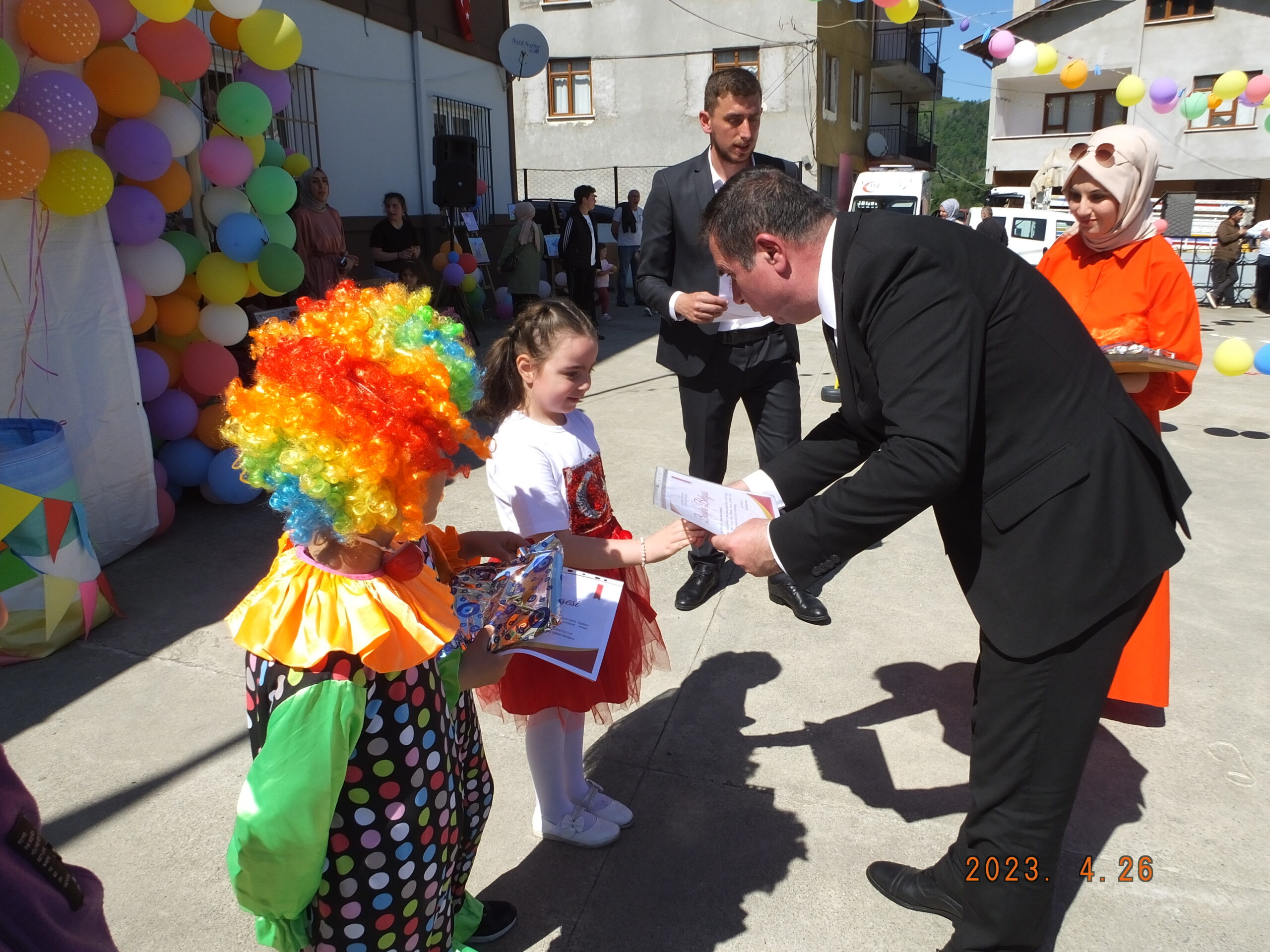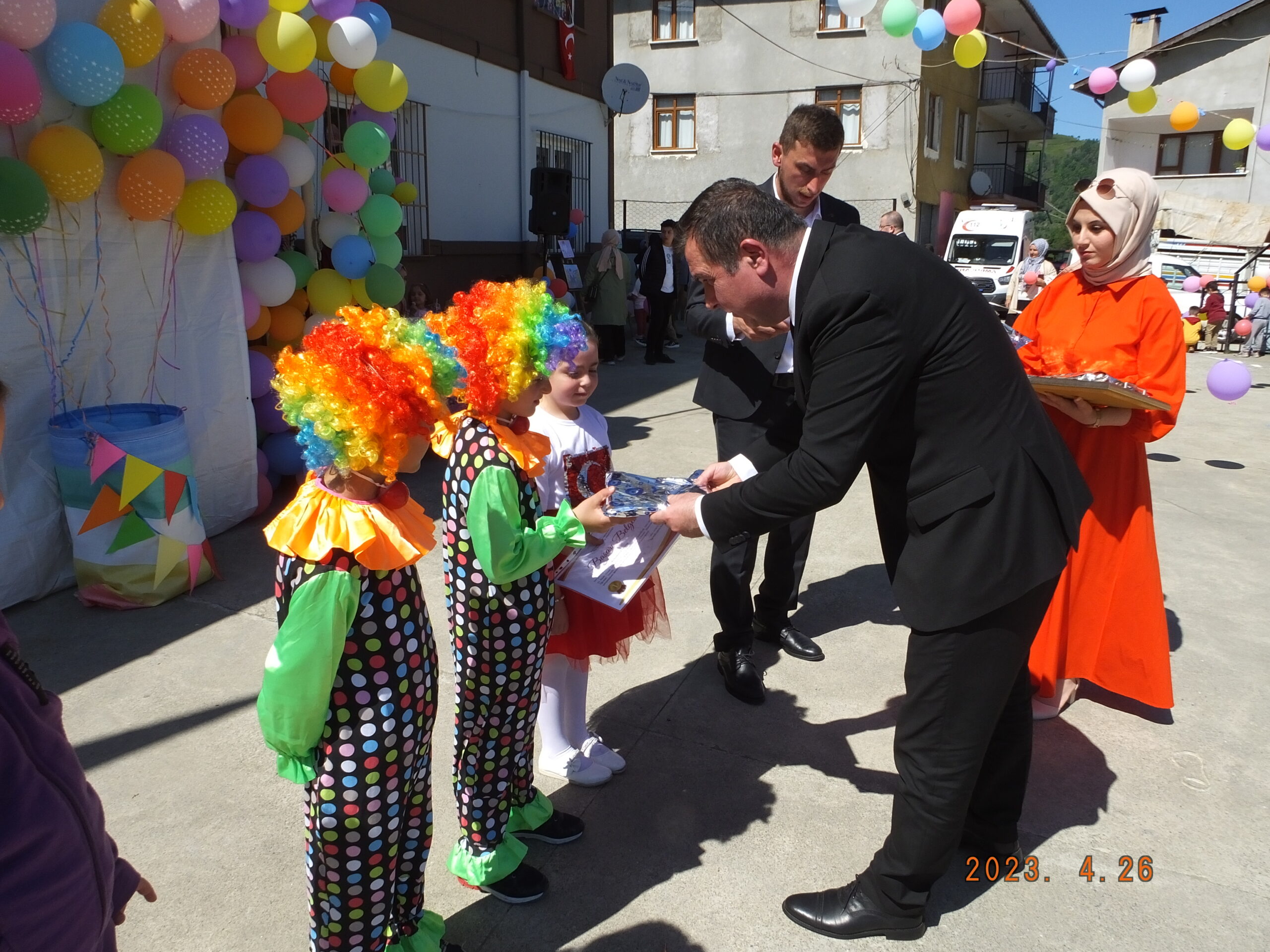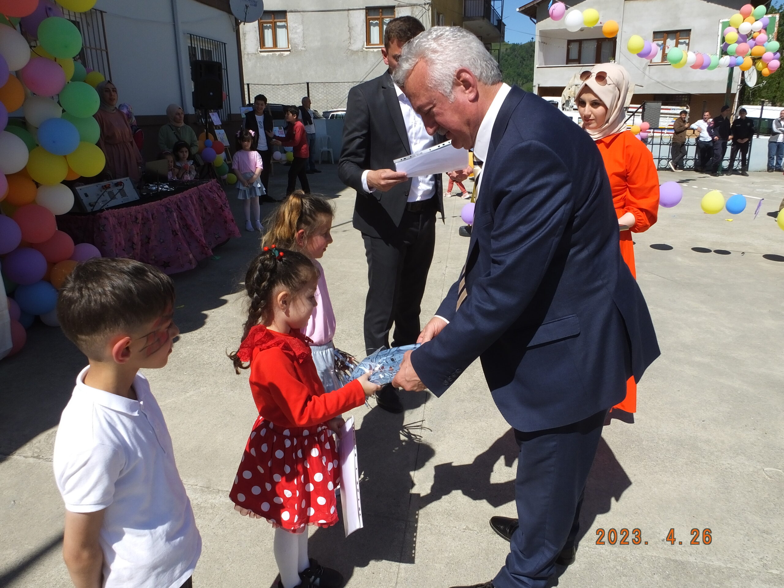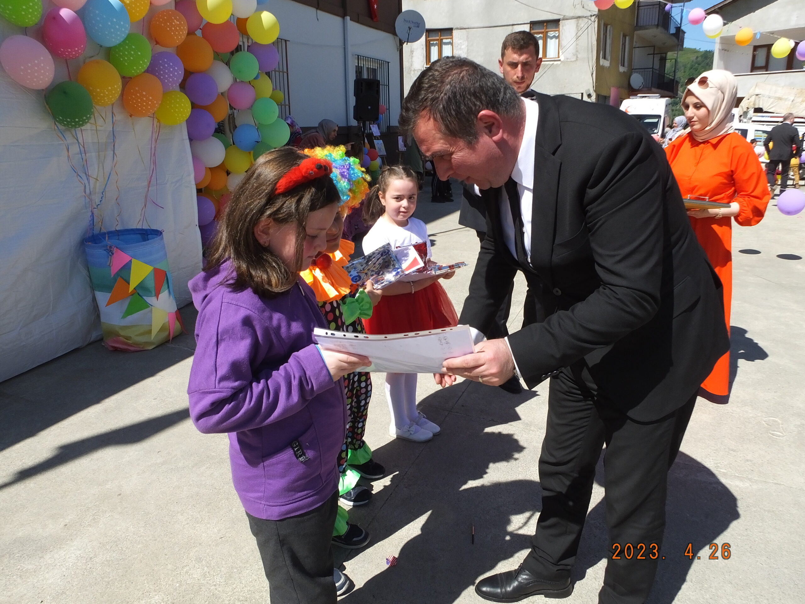 Saygı duruşu ve İstiklal Marşı ile başlayan programda öğretmenlerin rehberliğinde öğrencilerin hazırlamış oldukları çeşitli gösteriler misafirlere sunuldu. İlçe genelinde düzenlenen resim ve şiir yarışmalarında derece alanlara ödülleri takdim edildi.