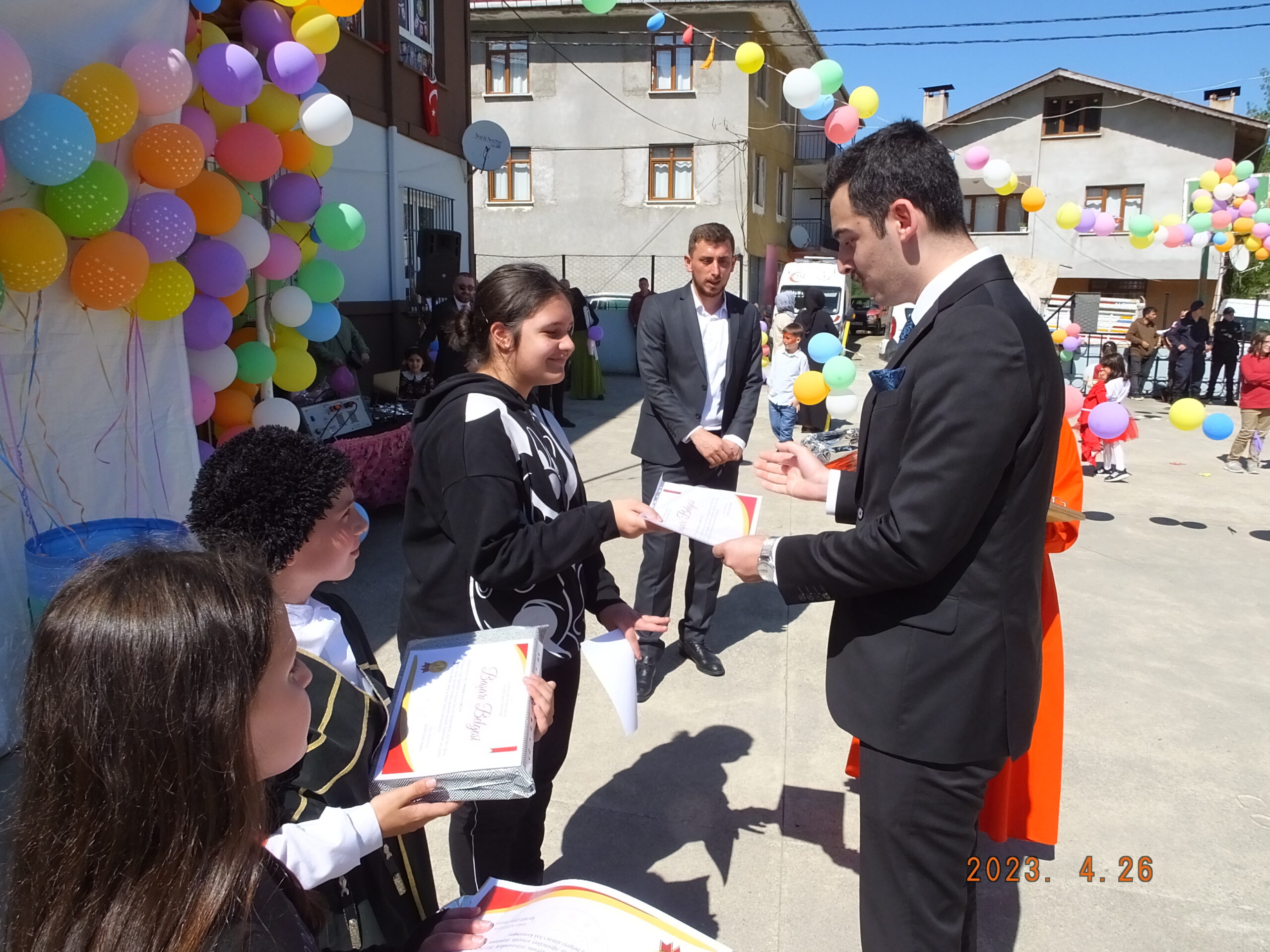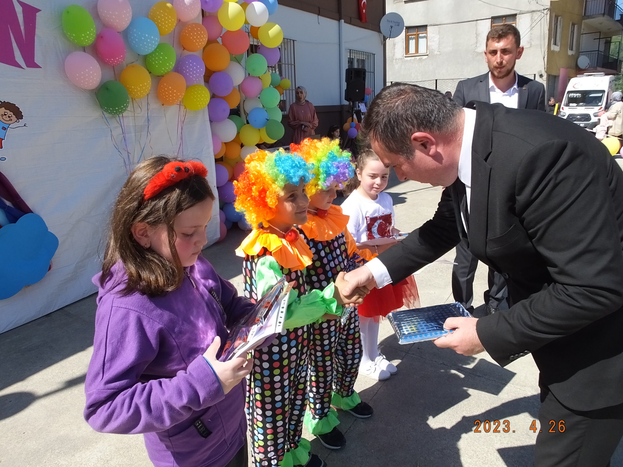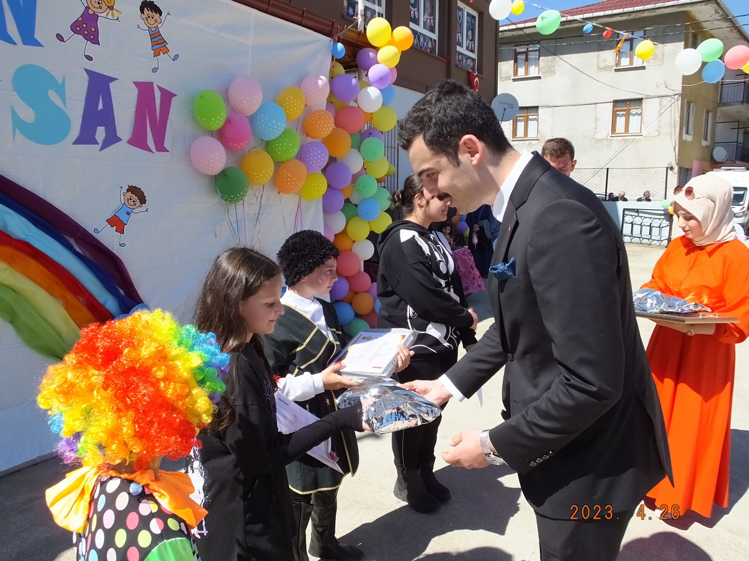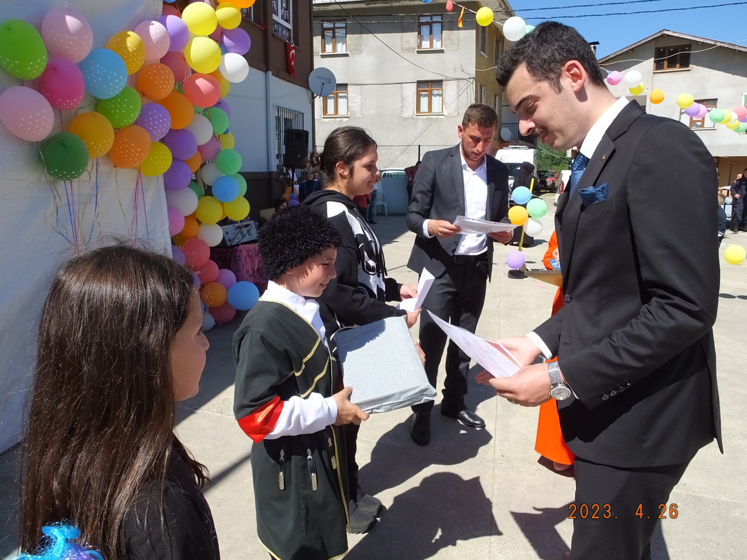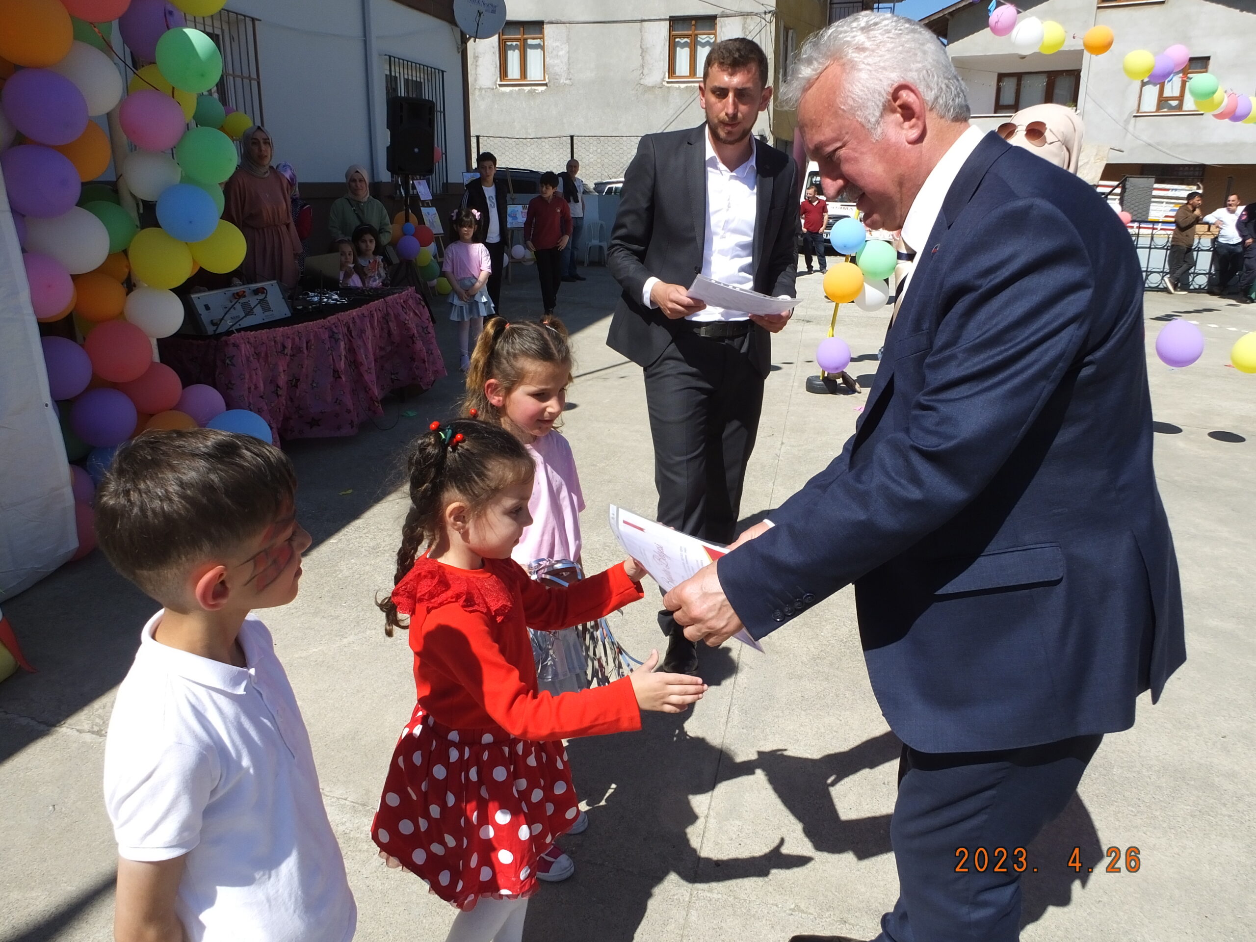 Saygı duruşu ve İstiklal Marşı ile başlayan programda öğretmenlerin rehberliğinde öğrencilerin hazırlamış oldukları çeşitli gösteriler misafirlere sunuldu. İlçe genelinde düzenlenen resim ve şiir yarışmalarında derece alanlara ödülleri takdim edildi.