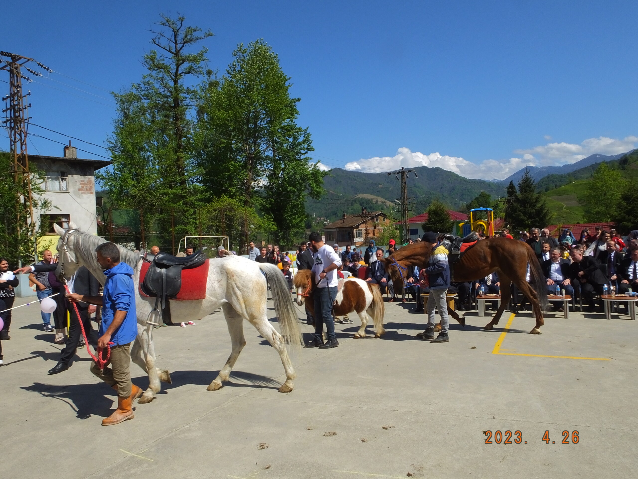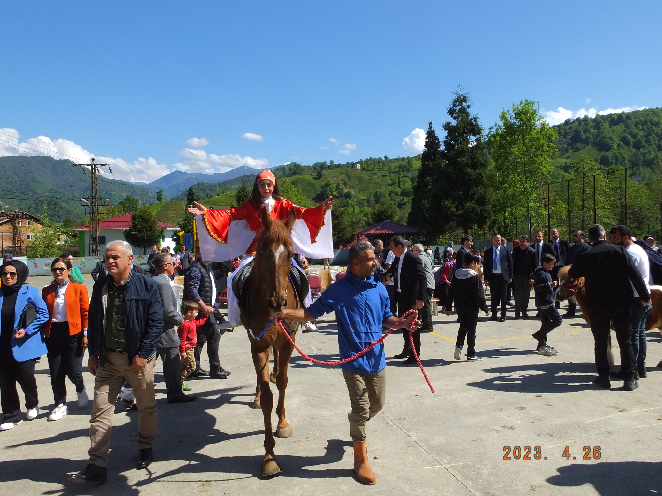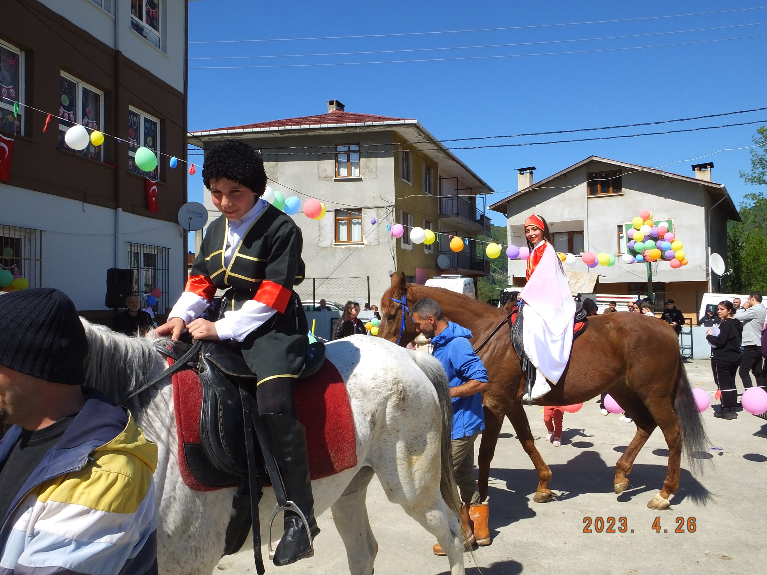 Öğrenciler ikram edilen pamuk şeker eşliğinde programı ilgiyle izlediler. Akabinde Arsin’den getirtilen atlara binen öğrenciler günün tadını karnaval atmosferinde çıkardılar.