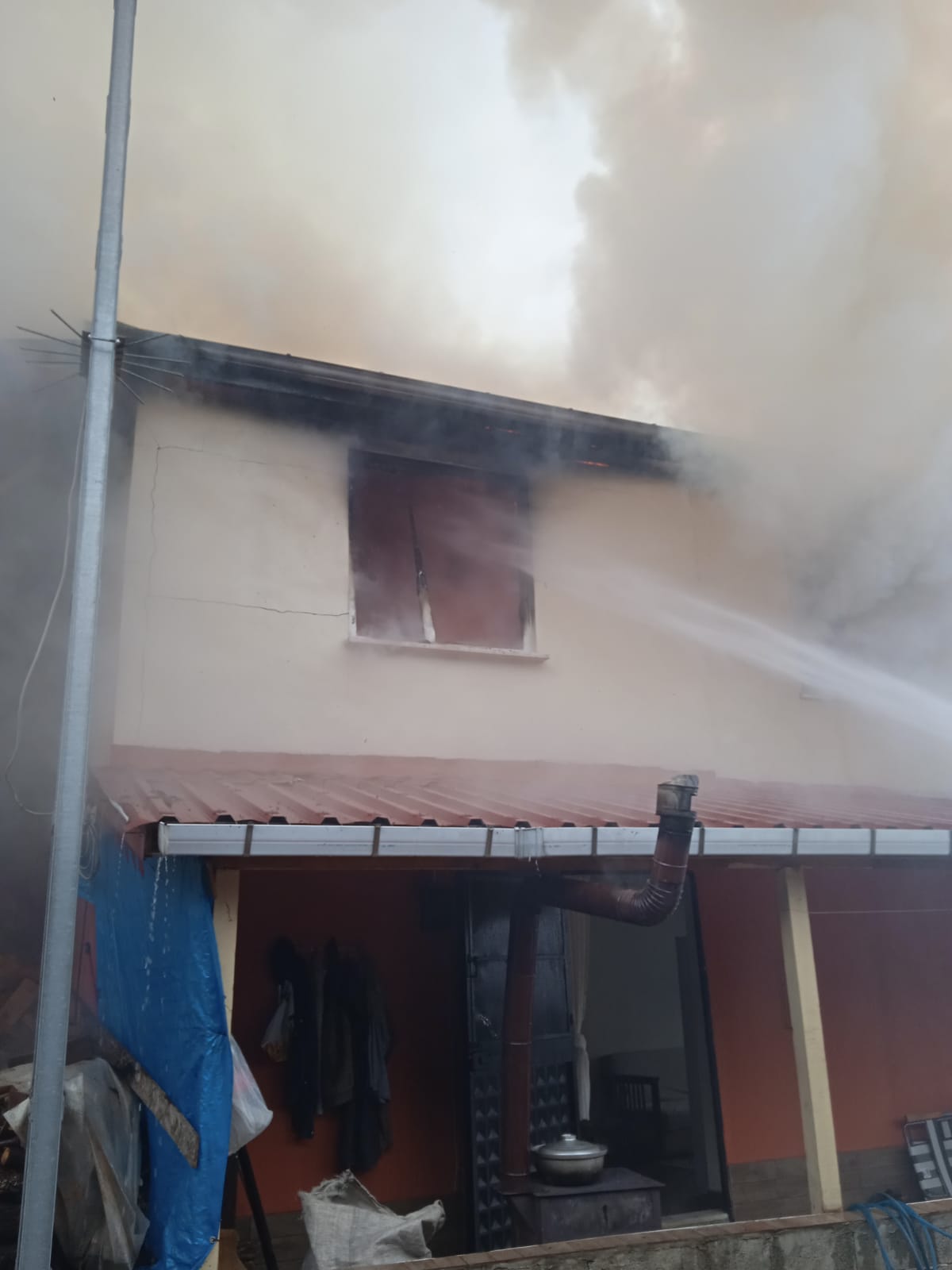 Kalkandere Hüseyinhoca köyün de Kemal MOLLAİBRAHIMOĞLU’na ait olan  iki katlı binada  yangın çıktı.