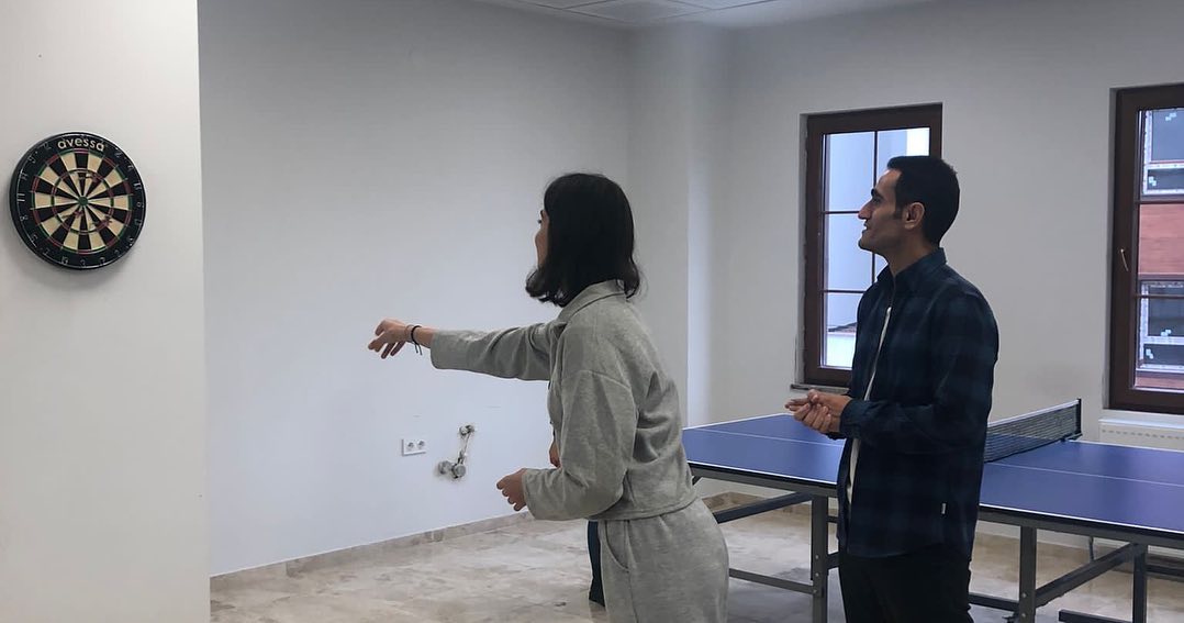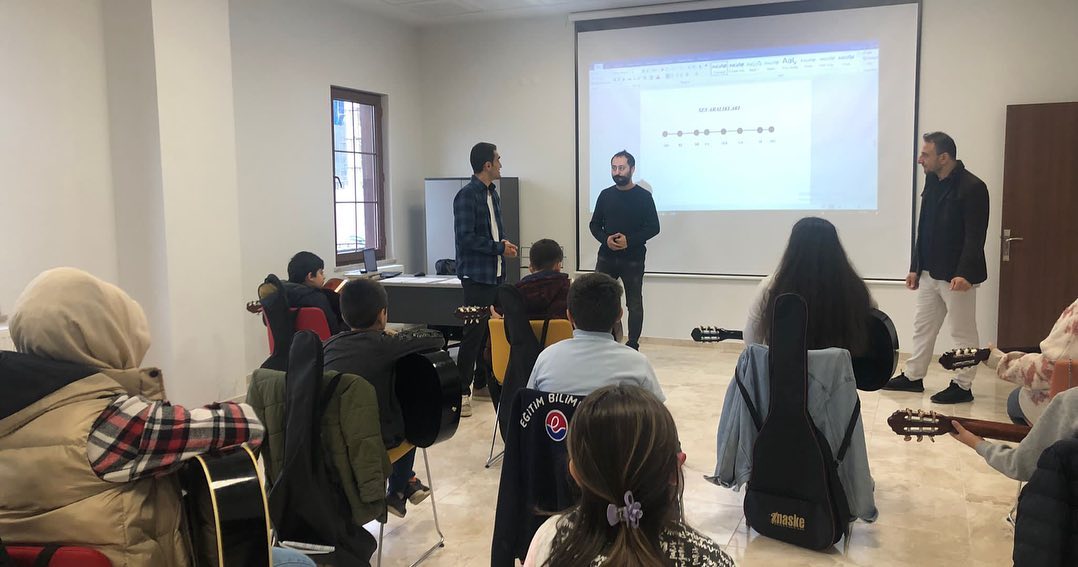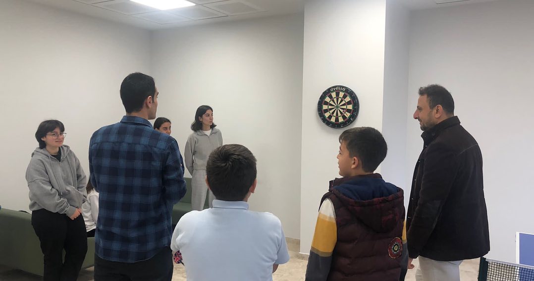 Gençlik merkezinde Gitar kursu gören öğrencilerle sohbet eden Kaymakam AÇIKGÖZ , gençlerle Dart, Masa tenisi, Basketbol oynadı.