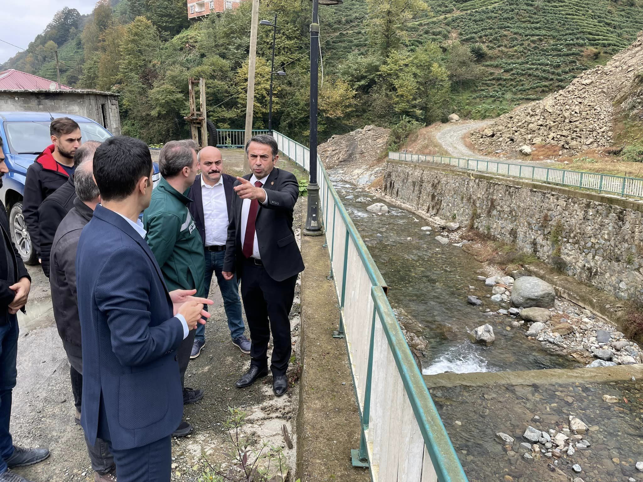 Kalkandere ilçe kaymakamı Ahmet AÇIKGÖZ, Rize DSİ müdürü Sinan YILDIZ, il genel meclis üyesi Mehmet ÖZTÜRK, birlik müdürü Ethem KESKİN ve ilgili köy muhtarları ile birlikte köylerde yapımı devam eden dere ıslah, genişletme, köprü, taş duvar ve iyileştirme çalışmalarını yerinde inceledi.