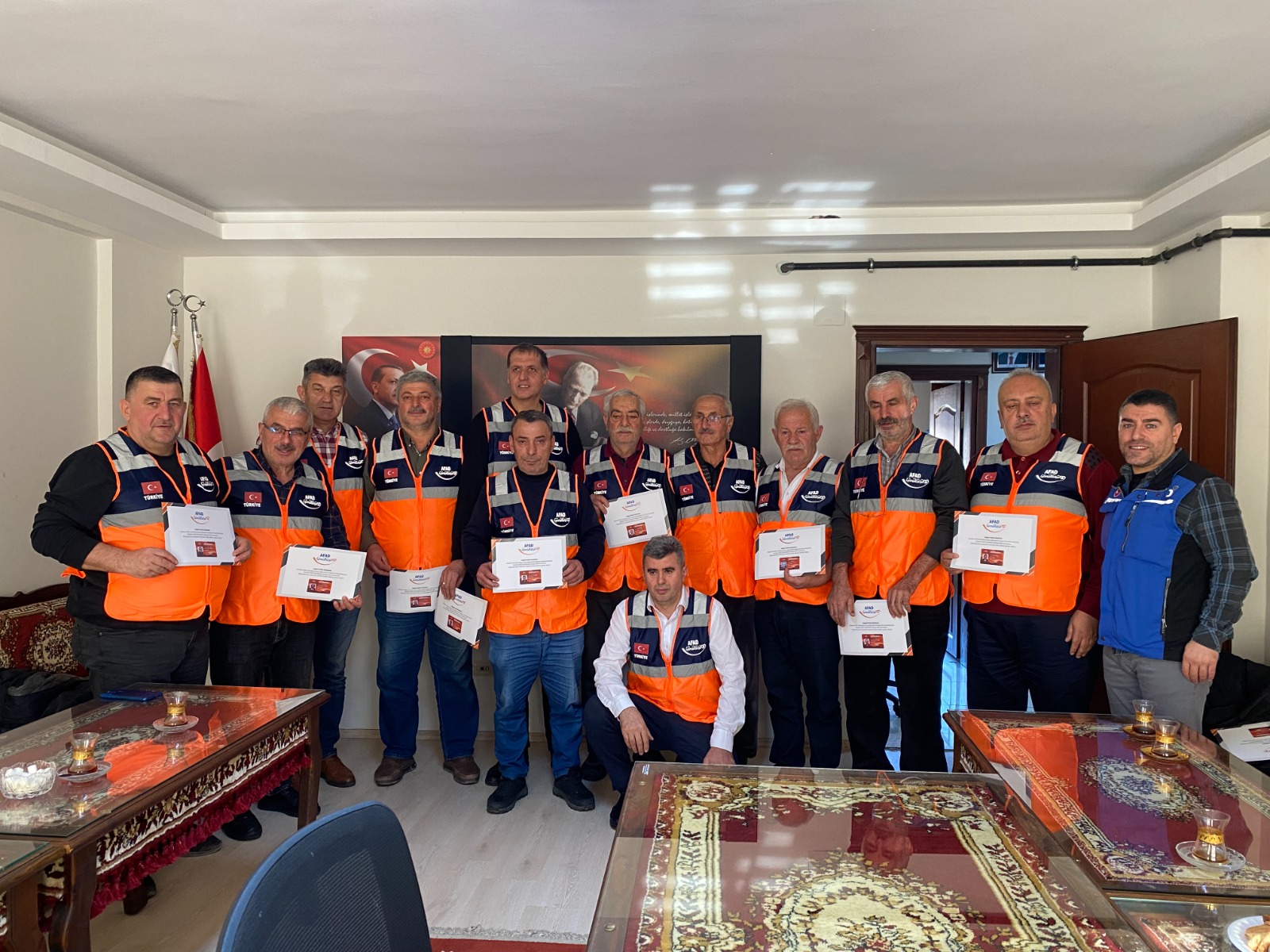 Muhtarlar AFAD Gönüllüsü Oluyor projesi kapsamında İlimizde 154 muhtar eğitimlerini tamamlayarak Destek AFAD Gönüllüsü kartı almaya hak kazandı. Muhtarlarla bir araya gelinerek kart dağıtımları yapıldı.