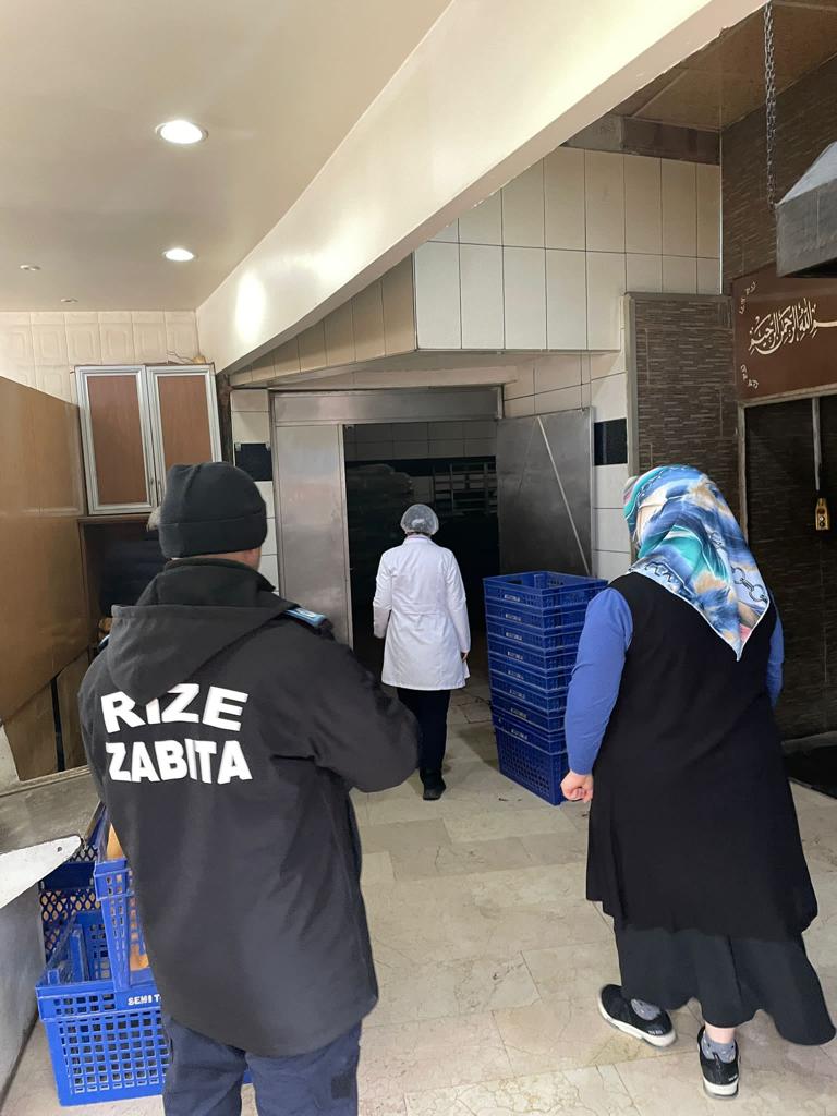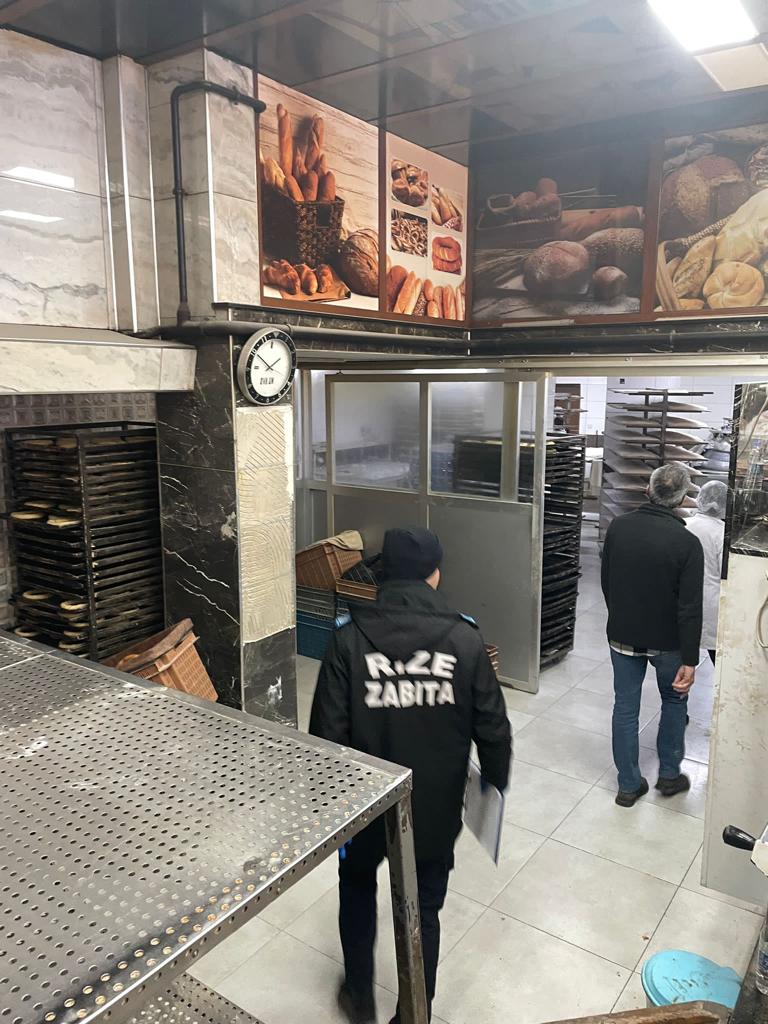 Rize Belediyesi Zabıta Müdürlüğü Ekipleri Rize şehir merkezinde bulunan fırın, pastane ve unlu mamül üretim ve satış yerlerinde denetim yaptı.