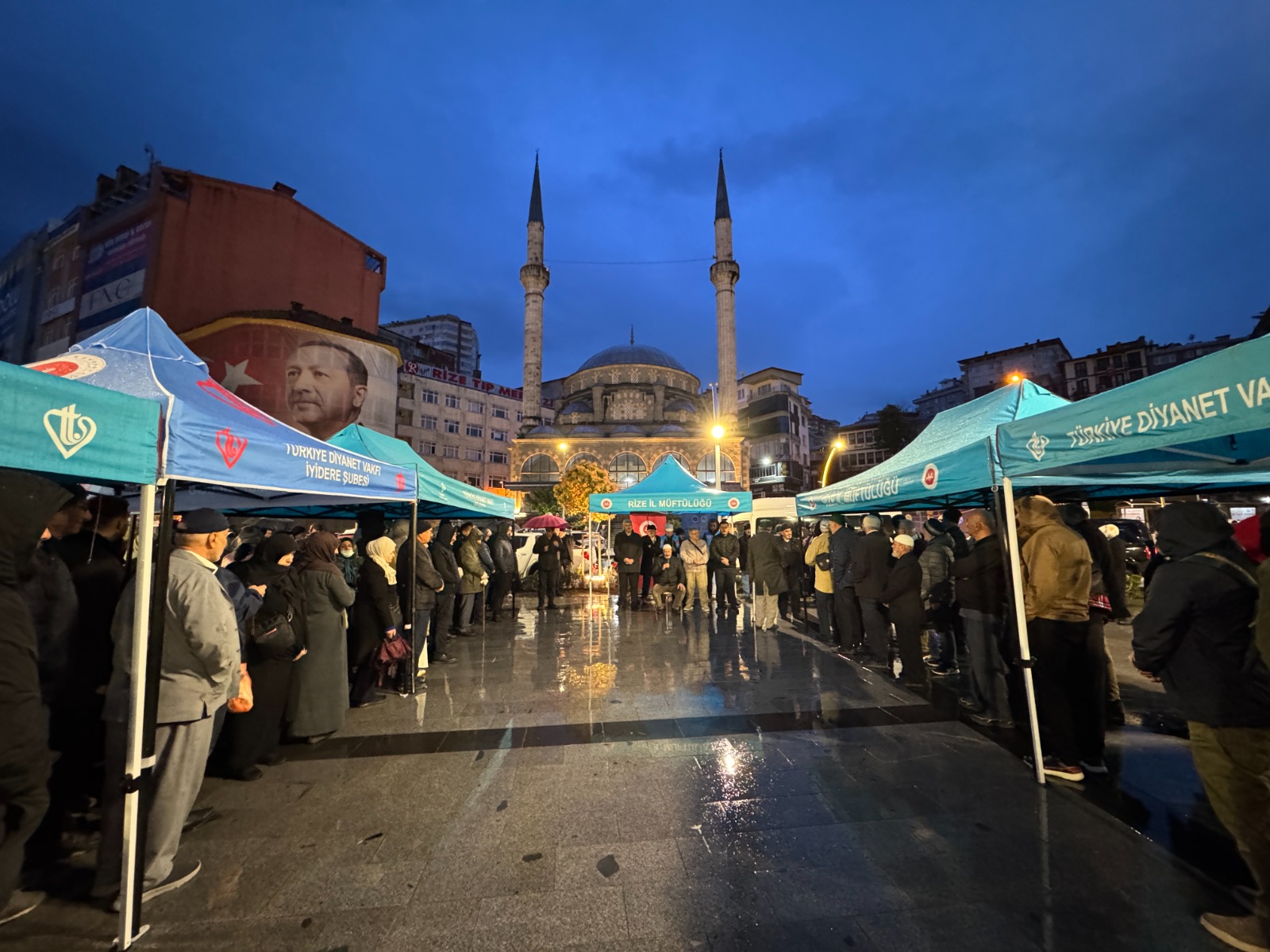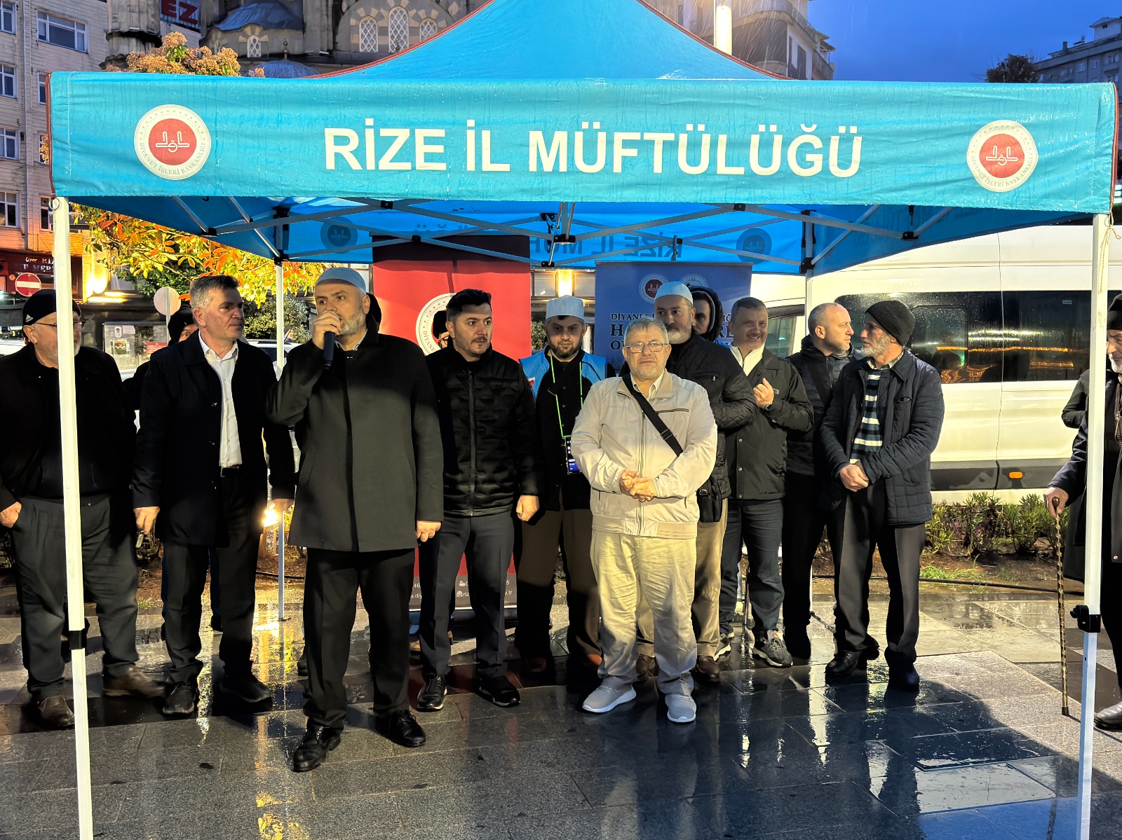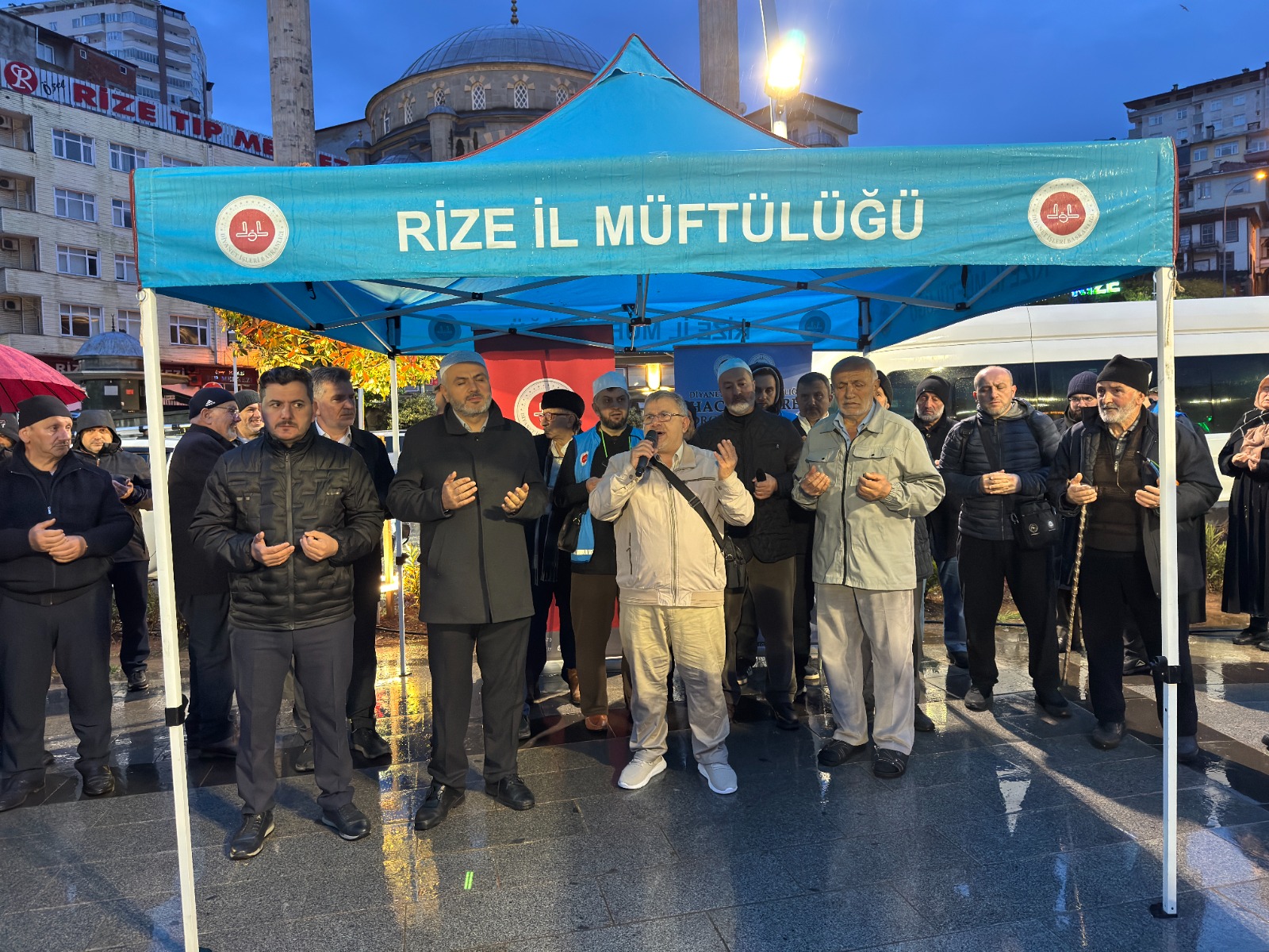 Rize İl Müftülüğü tarafından Rize Merkez Şeyh Camii önünde düzenlenen uğurlama merasimine, İl Müftü Vekili Abdulkerim Karabıyık, müftülük görevlileri, hacı adayları ve yakınları katıldı.