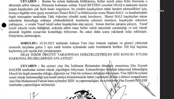 “Saldırıları yapanlar Antepli Cengiz’in ketibesindendi (bölük). 10 Ekim saldırısını Ebu Zeynep yaptırdı, IŞİD üstlenmedi. 10 Ekim saldırısındaki ikinci bombacı Mısırlıydı.”