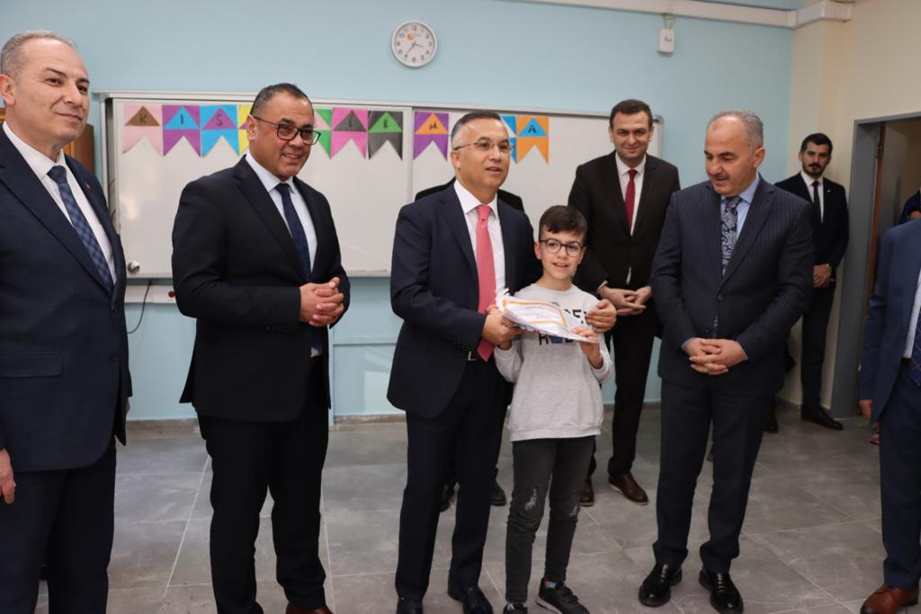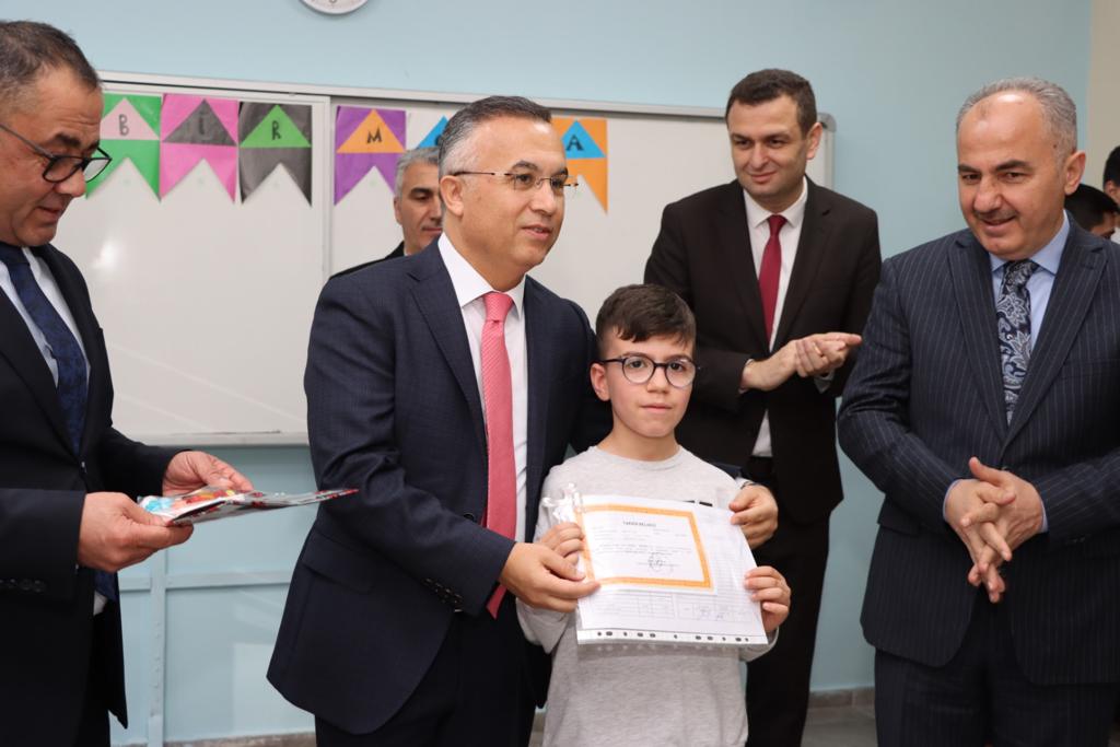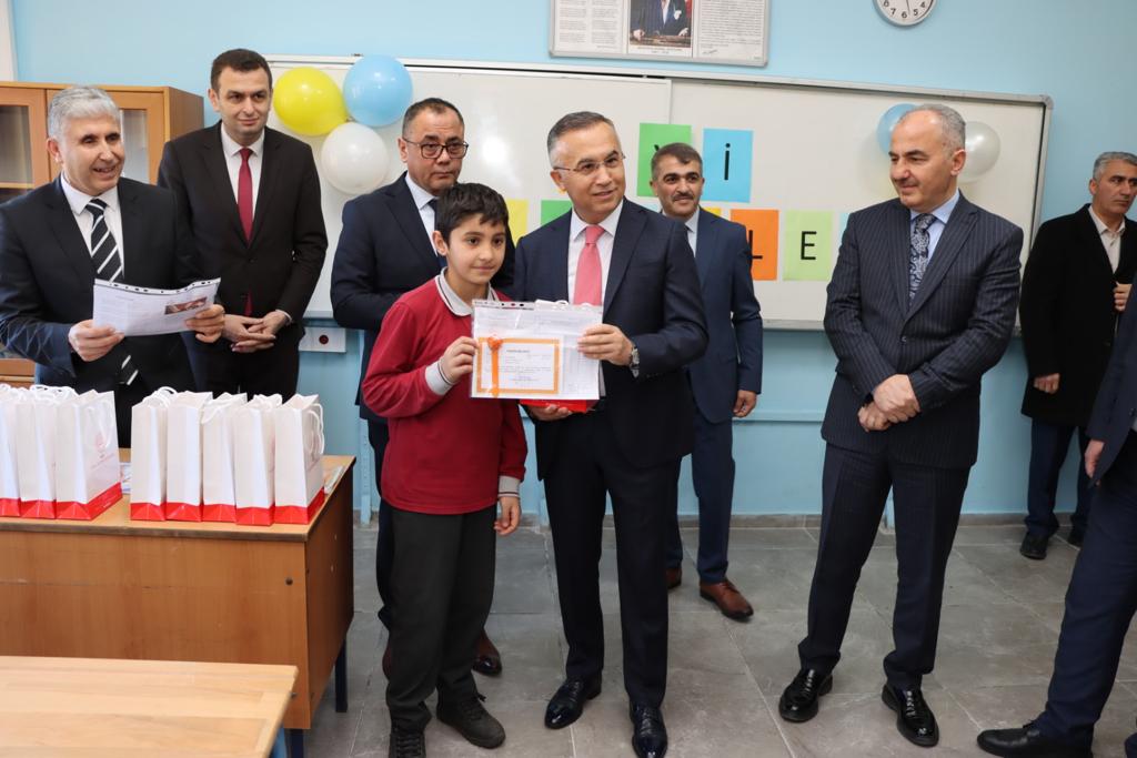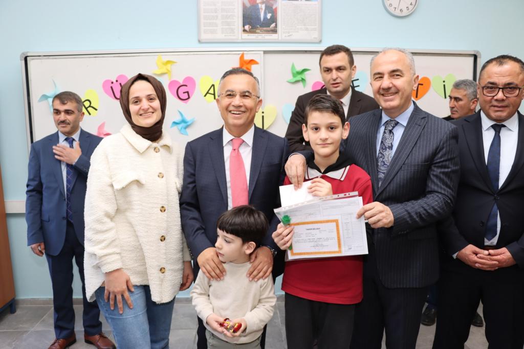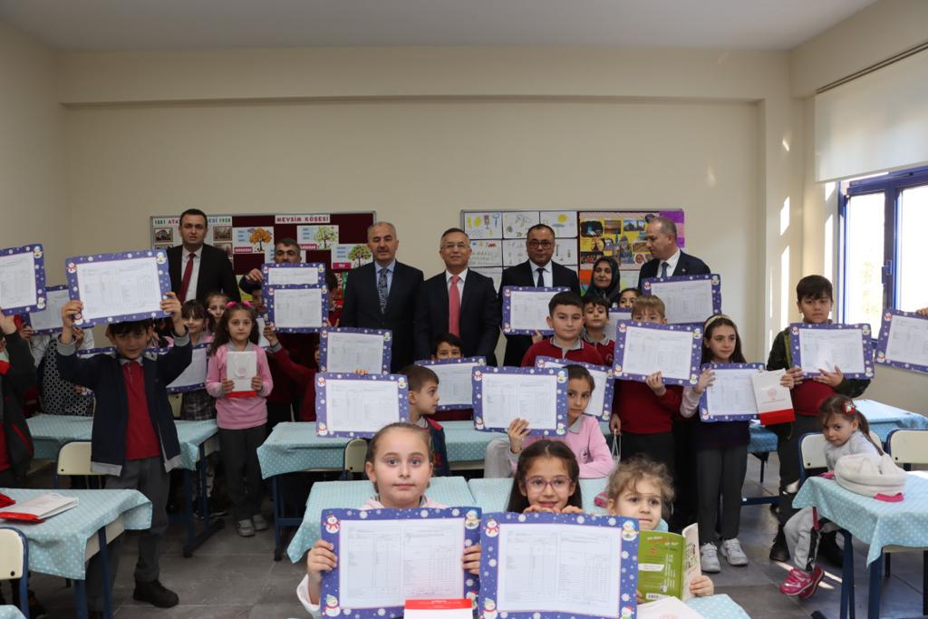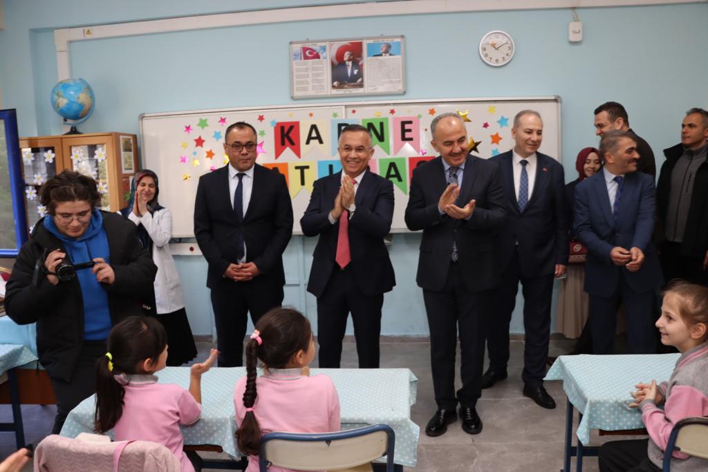 Vali Çeber ve Başkan Metin sınıflara girerek, öğrencilere karnelerini dağıttı. Öğrencilerle tek tek ilgilenerek sohbet eden Vali Çeber, tatilde ilk yarıyılın yorgunluğunu atlatmak için imkânlar dâhilinde sosyal, kültürel ve sportif aktivitelere katılarak tatili iyi değerlendirmeleri, bunun yanında okulda öğrendiklerini tekrar ederek pekiştirmeleri tavsiyesinde bulundu.