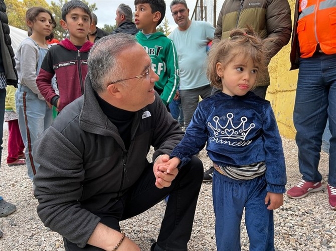 Rize Çadır Kentini gezerek afetzedelerle sohbet eden Vali Çeber, özellikle çocuklarla yakından ilgilenerek oyuncaklar hediye etti.