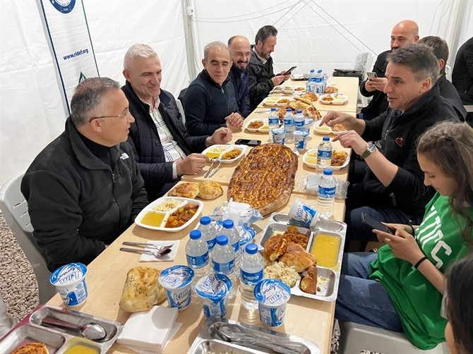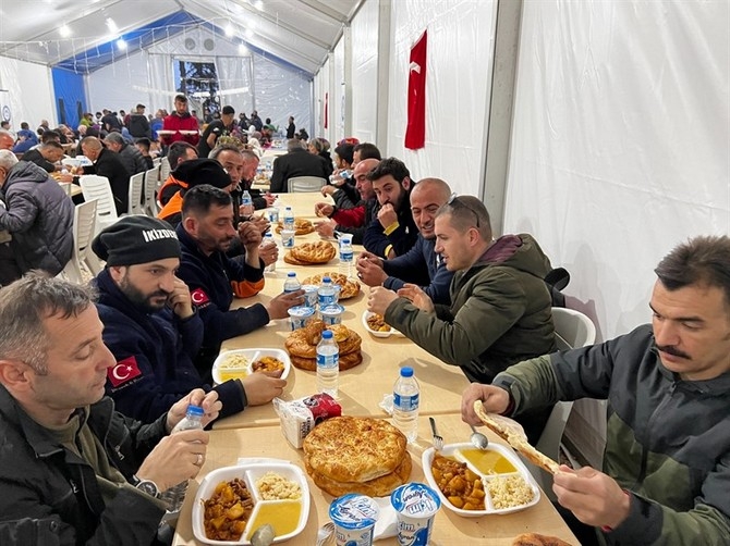 Her türlü ihtiyacı Rize’den karşılanan Hatay Kırıkhan’daki Rize Çadır Kenti’nde afetzedelerin yemek ihtiyaçları Nalia Karadeniz Mutfağı tarafından kurulan yemekhaneden karşılanıyor. Yine ramazan ayında 15 gün boyunca yemek iaşesi İstanbul Rize Dernekler Federasyonu (RİDEF), Rize Dernekler ve Vakıflar Birliği Vakfı (RİDEVA) organizasyonunda hayırsever iş insanları ve Rizeli dernek ve vakıflar tarafından sunulan katkılarla sağlanacak.